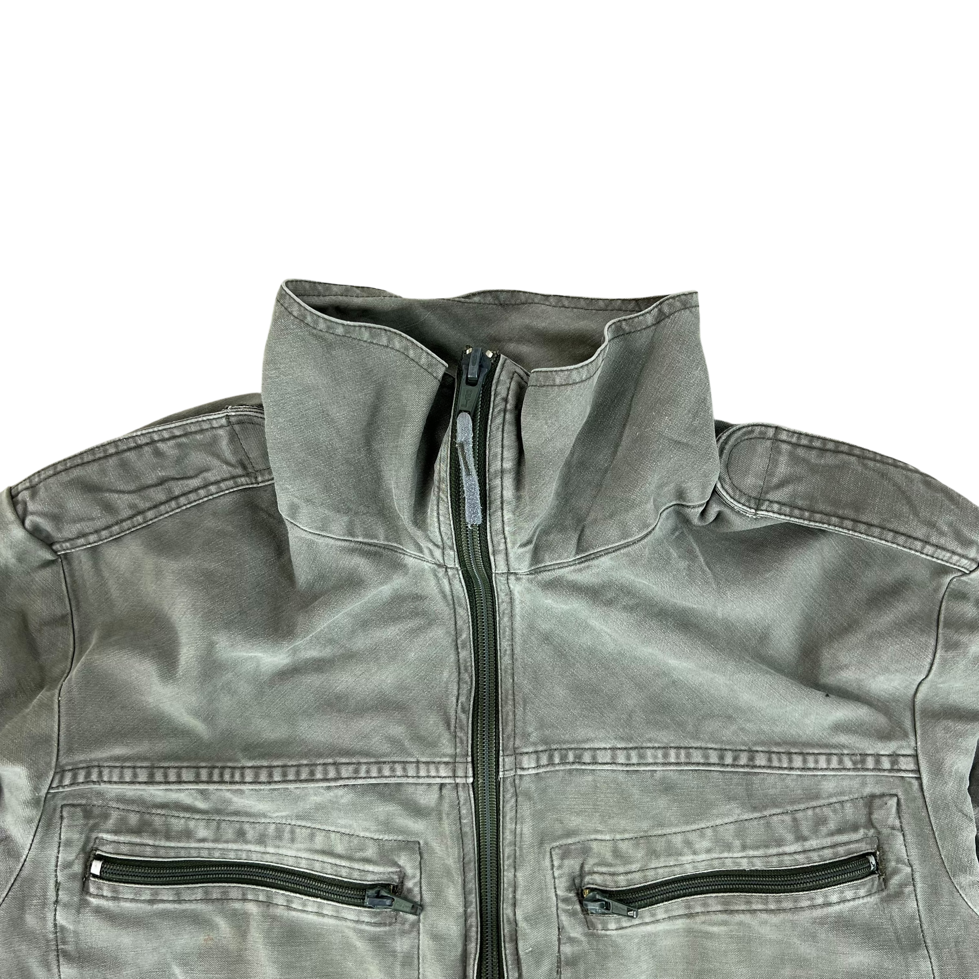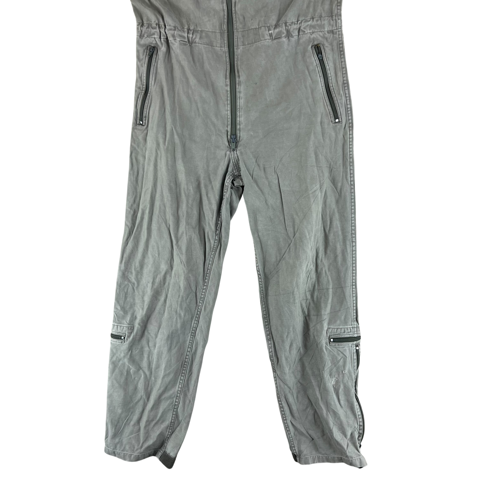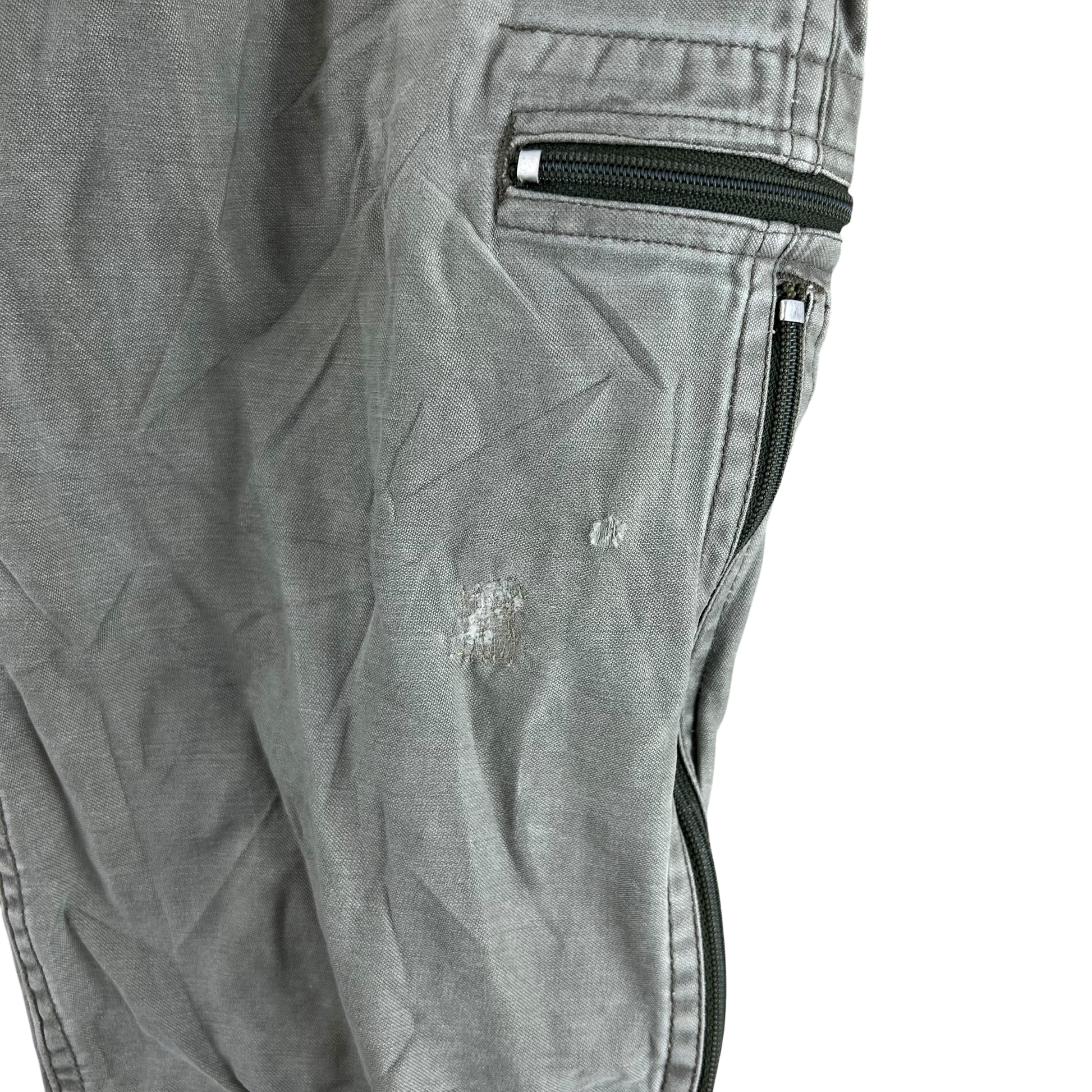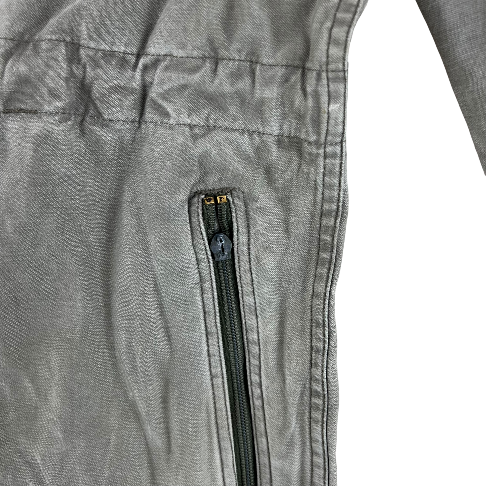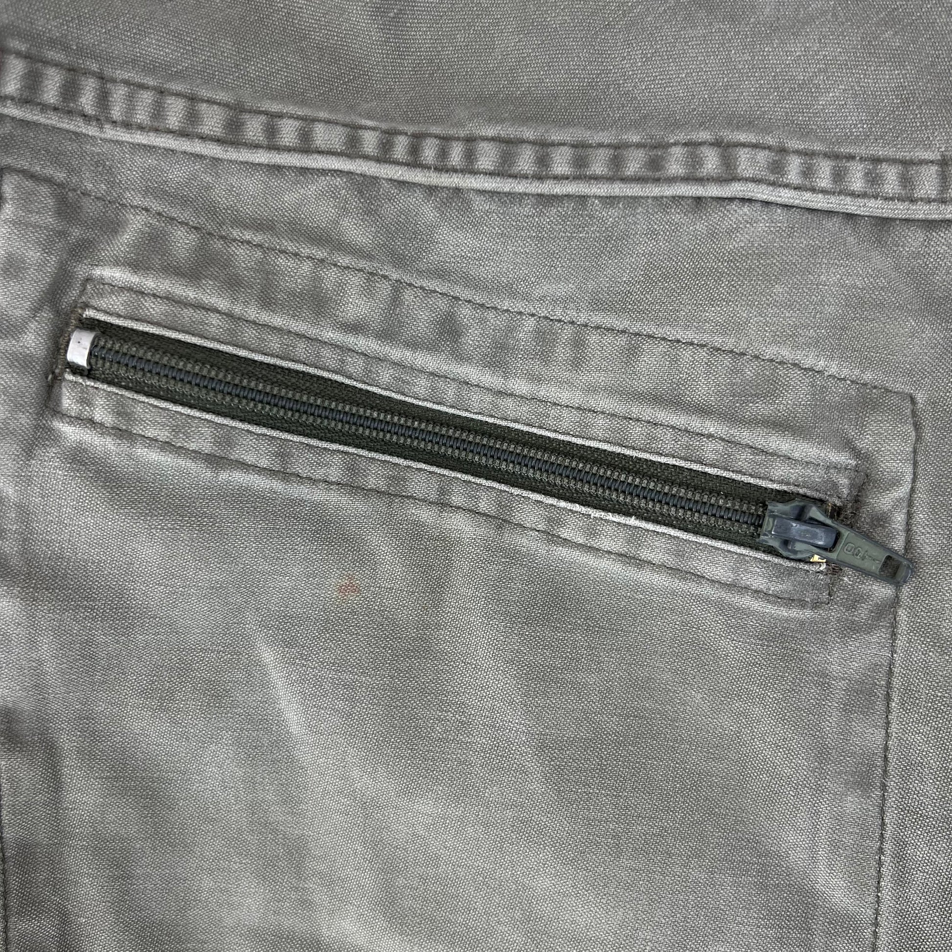 - Grade 2 / Original Condition - In decent shape but with signs of prior wear. The one pocket on the leg has the zipper removed, but all the others work well. Small repairs on the one leg as shown. Small markings as shown as well as a general wash on the denim but still some great durable kit up for more!