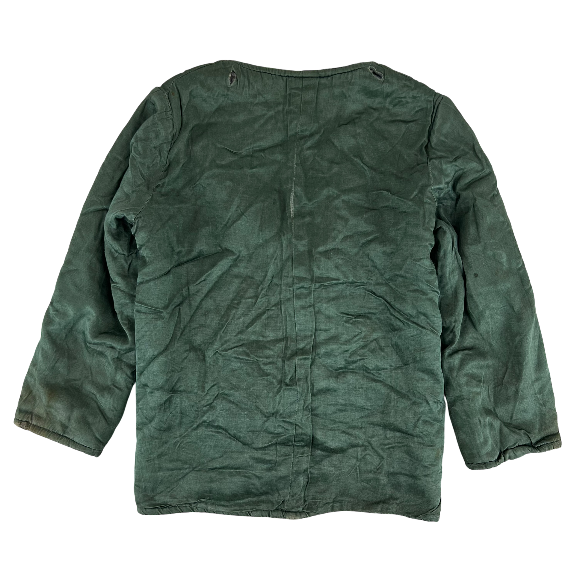 A luxurious piece of winter surplus from the Greek Army. Designed to fit into the M65 uniform jacket issued during the Cold War, this liner spares no expense when it comes to comfort and warmth. The shell is made of a silk type material, letting it slide easily into any coat, or as a elegant shell. These used to be known as smoking jackets among Greek soldiers, as so many used to nip out in the evenings for a quick cigarette wearing this on top of their evening attire.