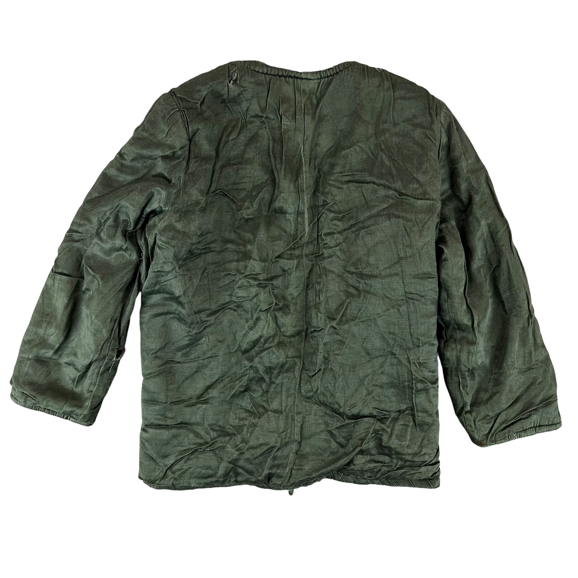 A luxurious piece of winter surplus from the Greek Army. Designed to fit into the M65 uniform jacket issued during the Cold War, this liner spares no expense when it comes to comfort and warmth. The shell is made of a silk type material, letting it slide easily into any coat, or as a elegant shell. These used to be known as smoking jackets among Greek soldiers, as so many used to nip out in the evenings for a quick cigarette wearing this on top of their evening attire.