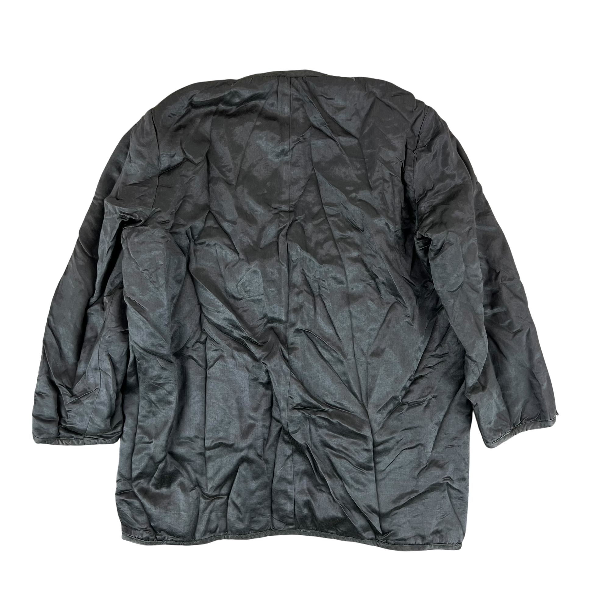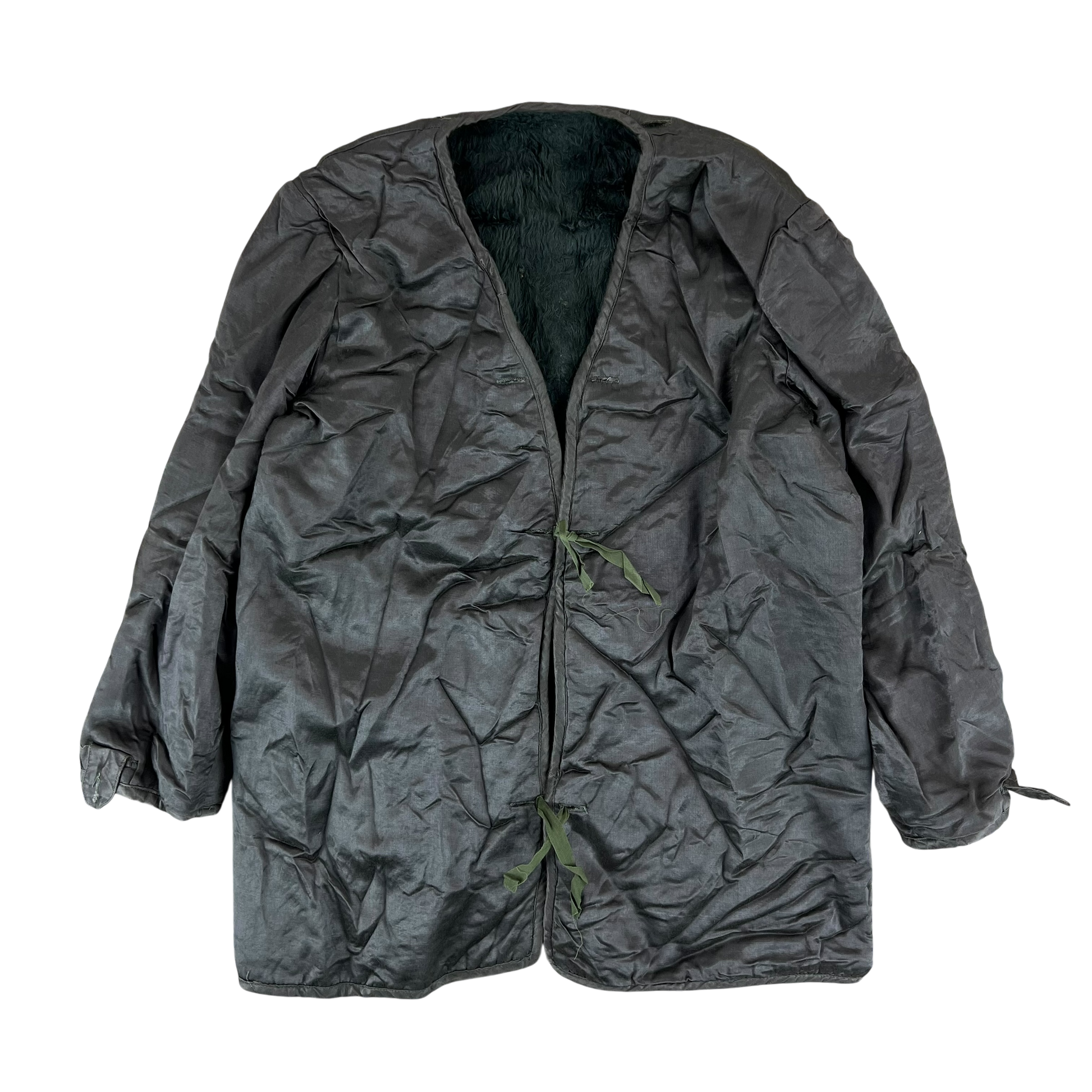 A luxurious piece of winter surplus from the Greek Army. Designed to fit into the M65 uniform jacket issued during the Cold War, this liner spares no expense when it comes to comfort and warmth. The shell is made of a silk type material, letting it slide easily into any coat, or as a elegant shell. These used to be known as smoking jackets among Greek soldiers, as so many used to nip out in the evenings for a quick cigarette wearing this on top of their evening attire.