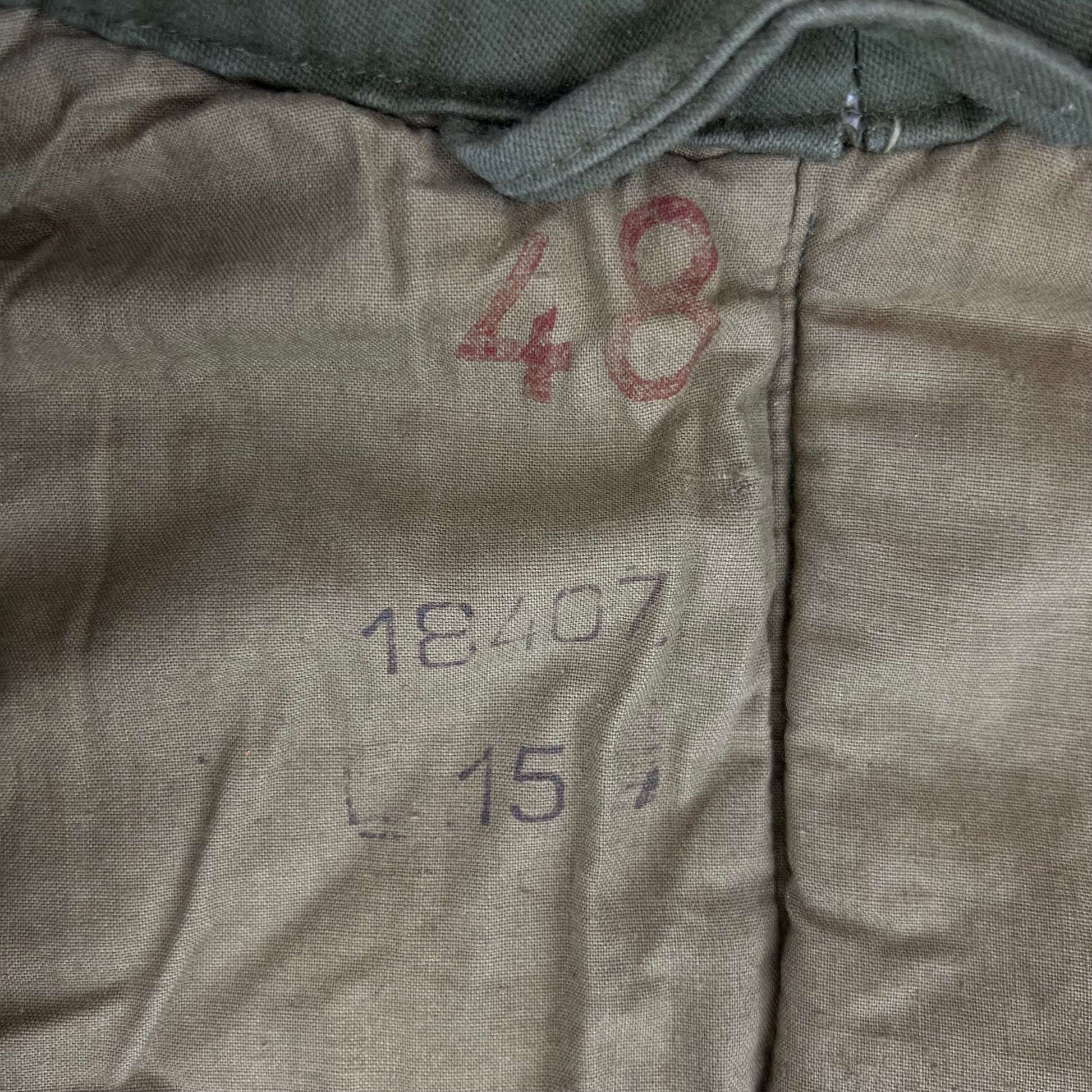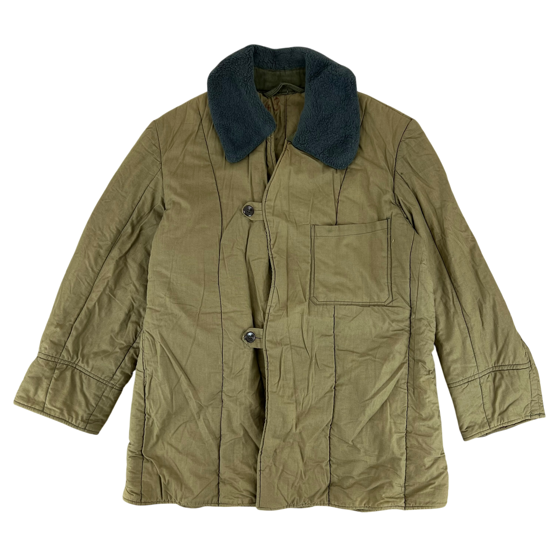 A wonderful piece of vintage cold weather kit from Soviet Hungary. Designed to be worn as part of the Hungarian winter uniform this jacket liner slots wonderfully below the olive green parkas that would've been worn by soldiers of a bygone era.