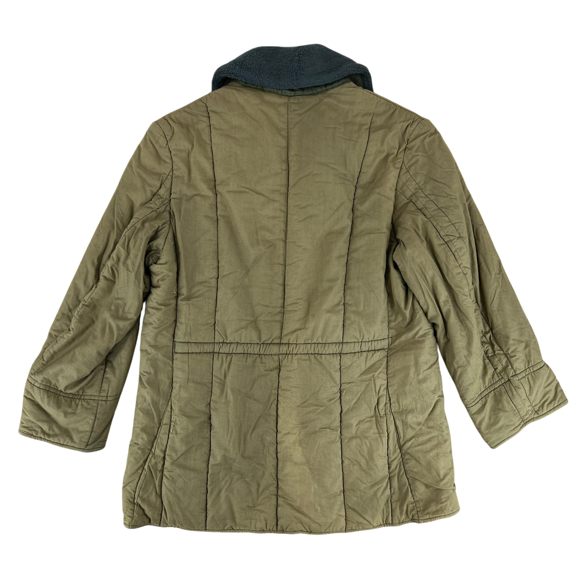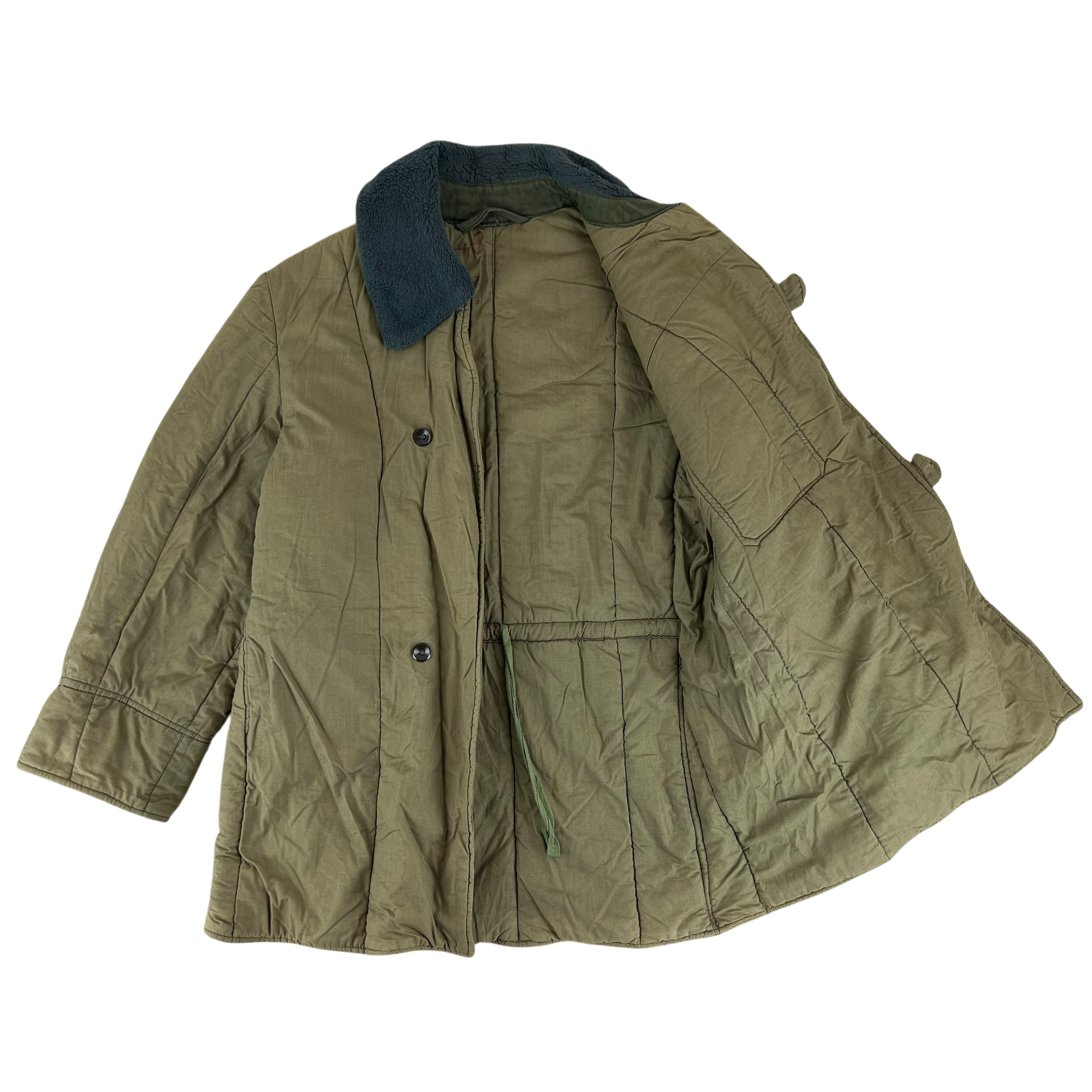 The liner is incredibly warming, designed to last the harsh and bitter winters of Eastern Europe. It is made of durable cotton shell with a thick and insulating wool blend lining. The piece is of course designed to be worn under the correlating parka but in all honesty it provides plenty by itself. It has a wonderful faux fur collar, a slit pocket and an internal drawstring across the waist which, along with the elasticated cuffs, provide fantastic insulation during harsh weather. A great piece of Cold War kit, that is sure to keep you cozy whatever your adventure.