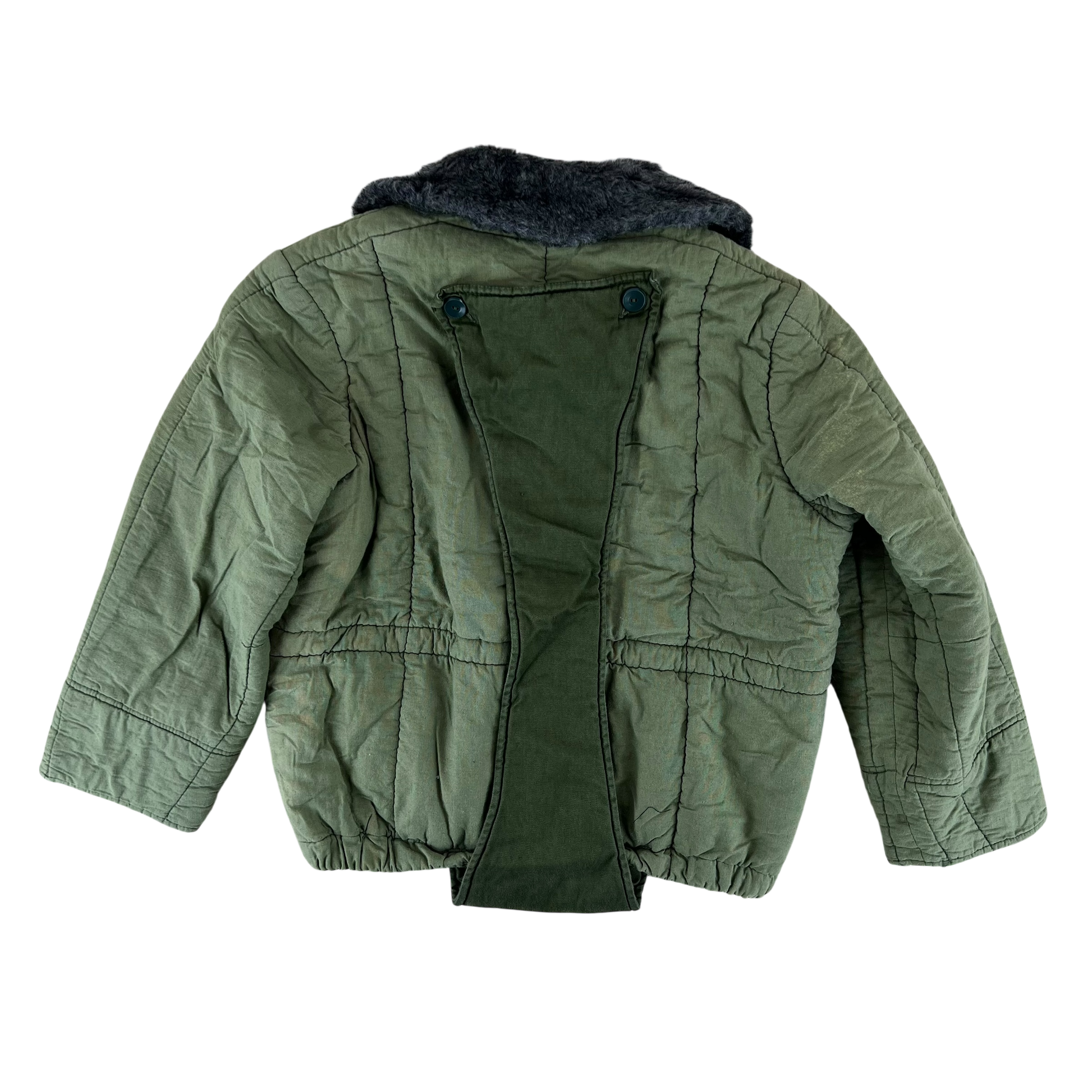 A wonderful piece of vintage cold weather kit from Soviet Hungary. Designed to be worn as part of the Hungarian winter uniform this jacket liner slots wonderfully below the olive green "tank" parkas that would've been worn by soldiers of a bygone era.