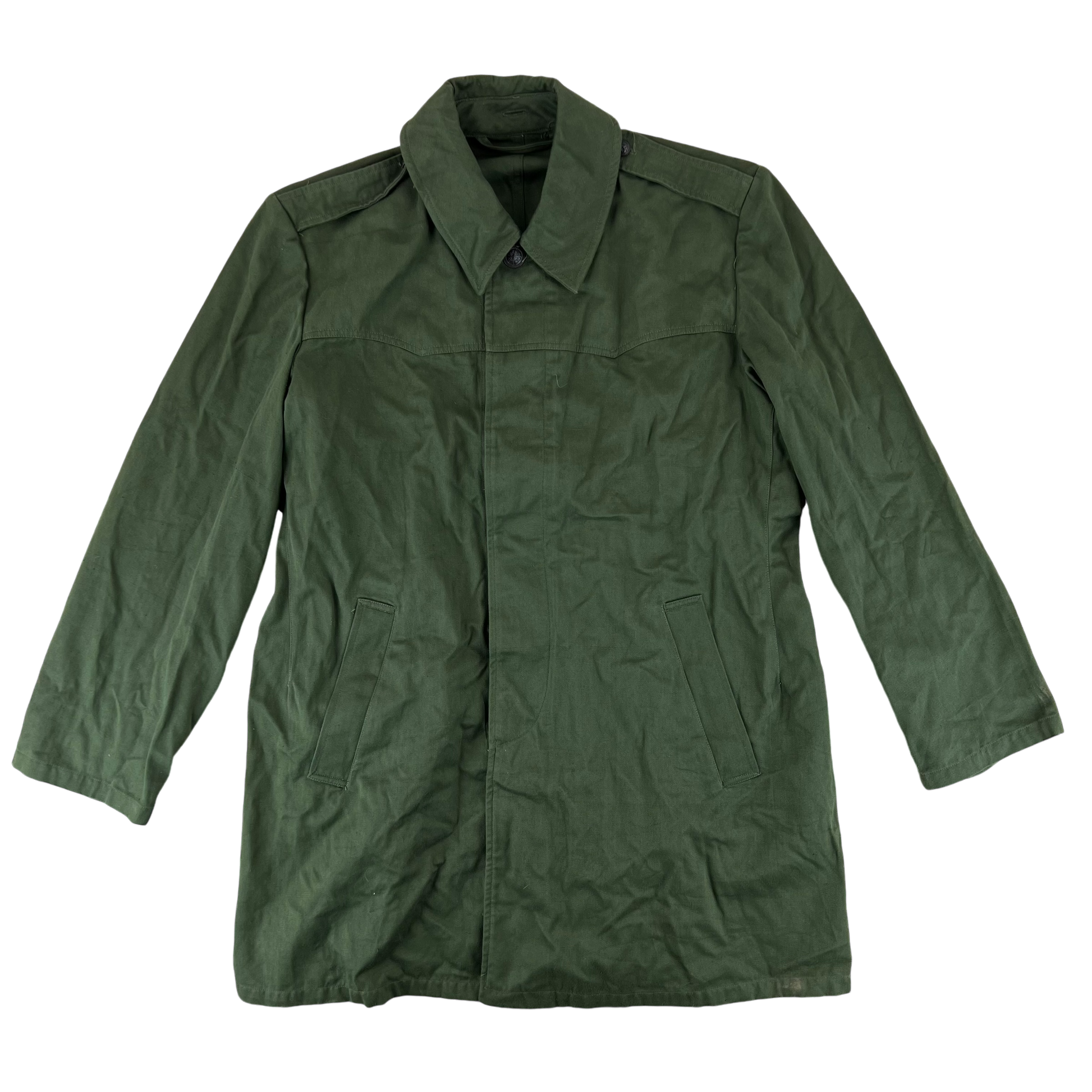 Brilliant vintage surplus from the socialist days of the Hungarian People's Republic. Made of an excellent all cotton material, these durable parkas saw use as a field jacket for decades across the Hungarian army. It has a sleek and minimal design, great for in the field. The parka was intended for autumnal and winter use combined with a thick liner, but it works great all year round.