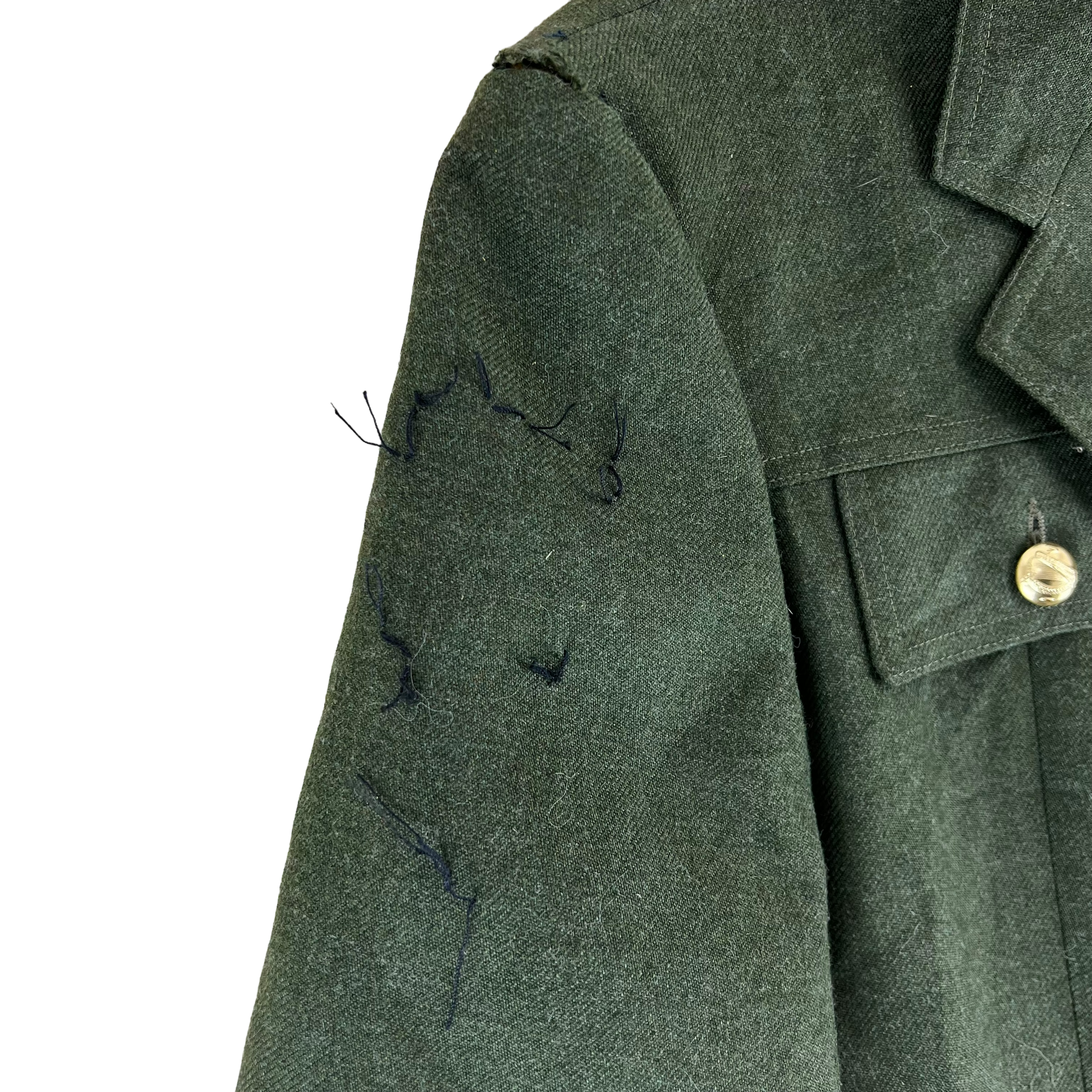 - Grade 2 - Good quality surplus, previously issued with use. The shoulder epaulettes have been removed and at the top of each shoulder and as such there is a hole where it would have been previously sewn in. This will of course need repairing, but shouldn't be too difficult. There is also a few threads on the one sleeve where another patch has been removed. Price reflects this.