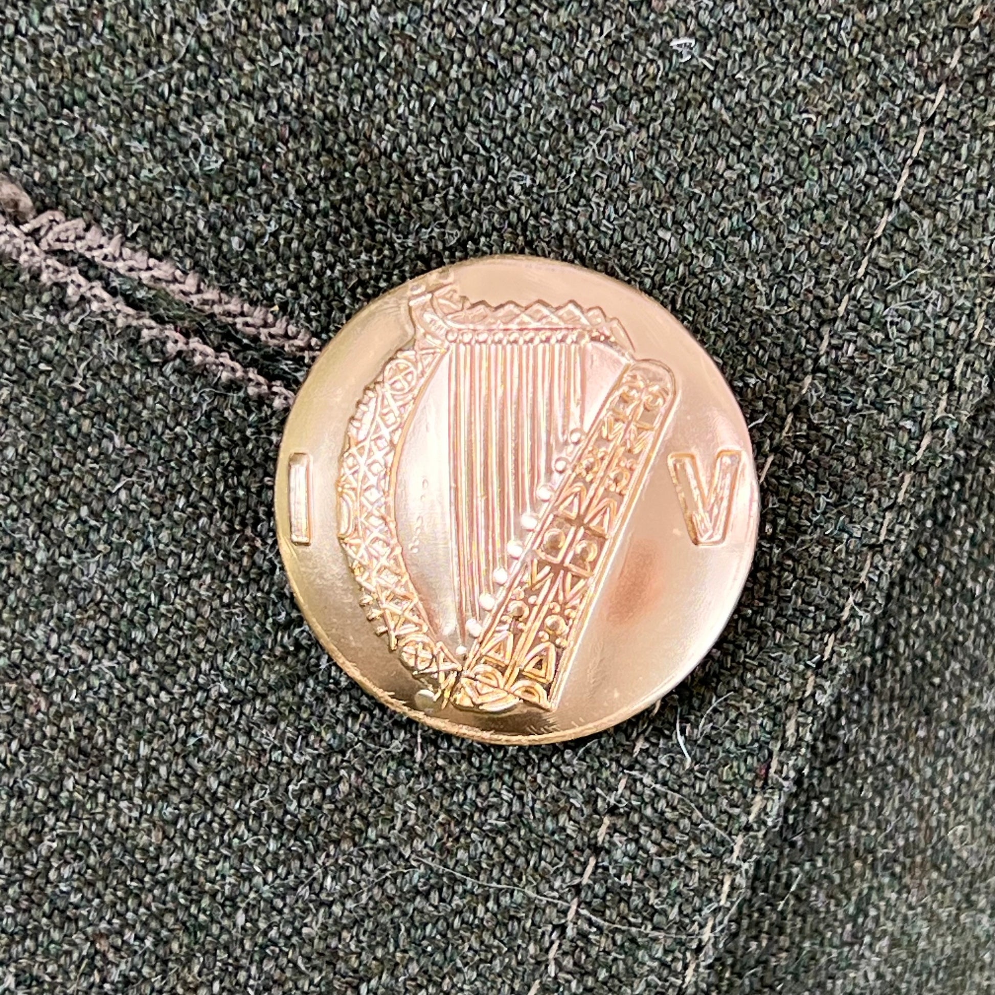 For features, it's sadly lacking quite a few as is the case with most women's clothing. The 2 chest pockets and the 2 hip pockets are faux, being purely for decoration. There is however some small thread belt loops. There's also the most endearing staybrite buttons, which are engraved with "IV" with a harp in the centre. It's a lovely quaint touch. There's also the F. C. A. shoulder patch on the left hand side.