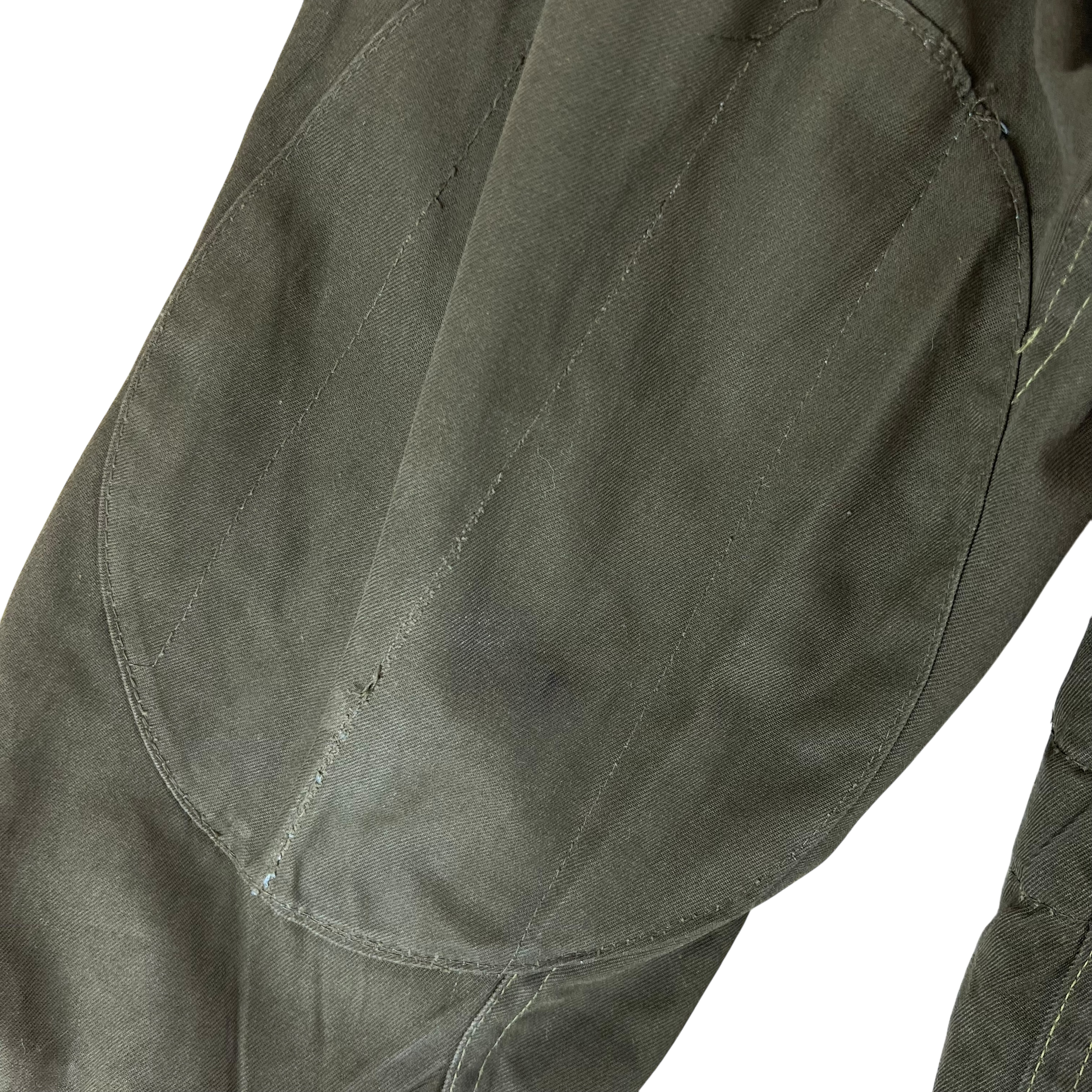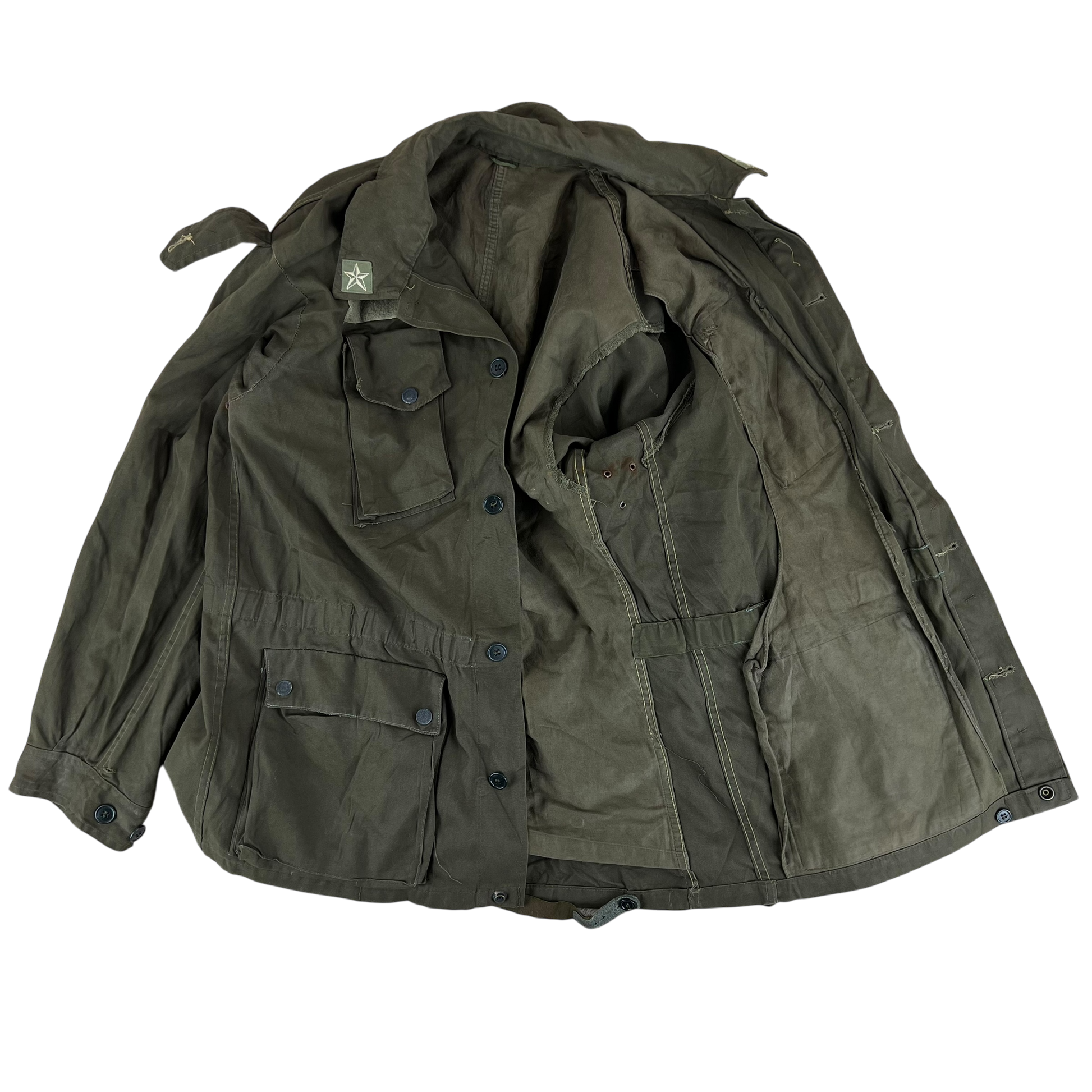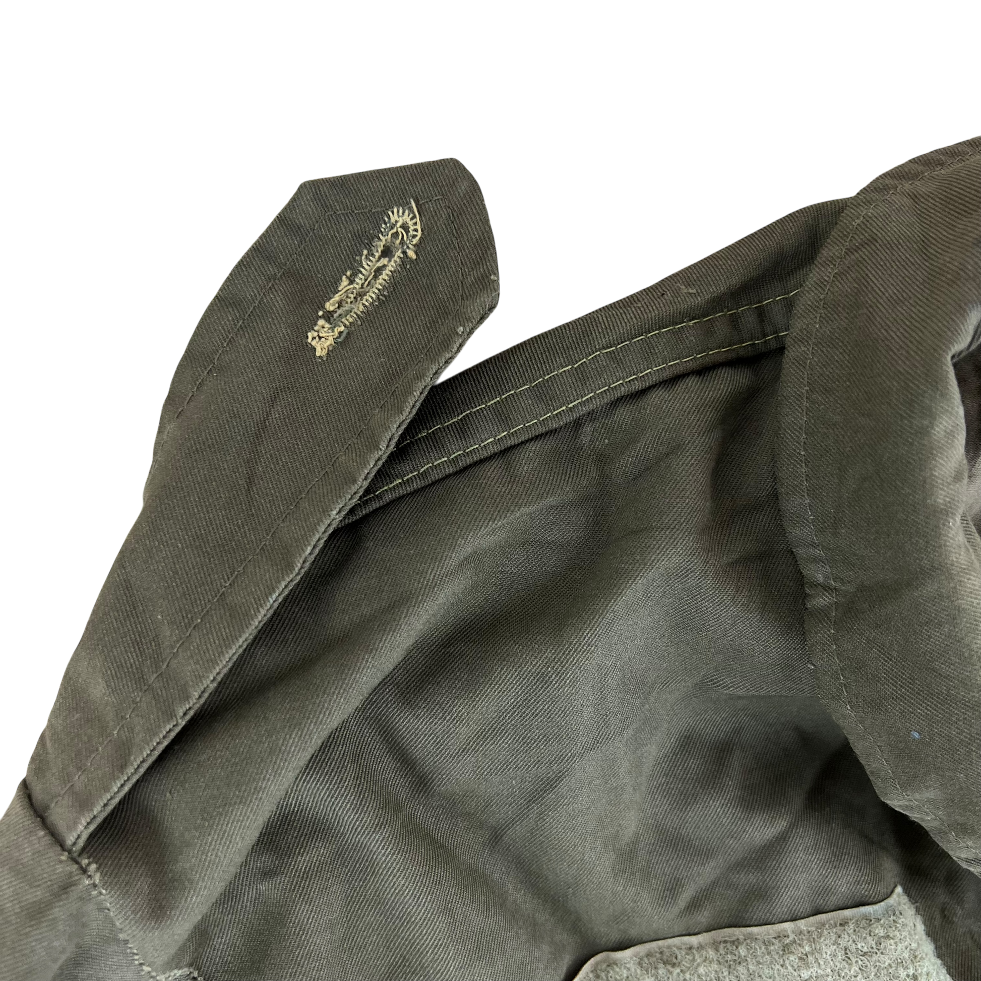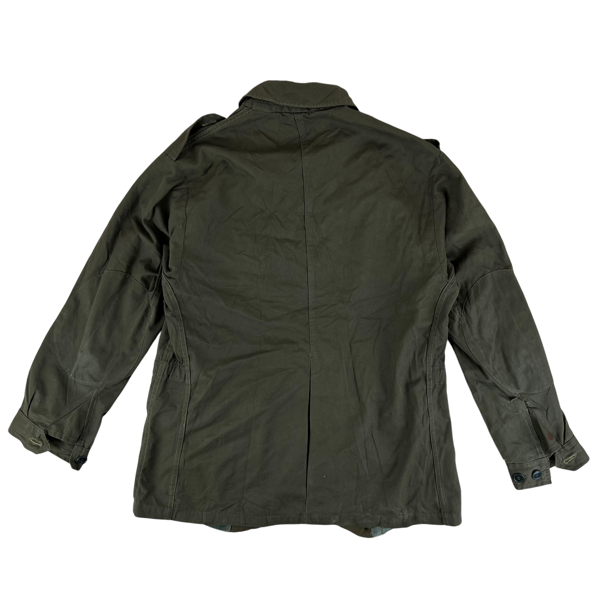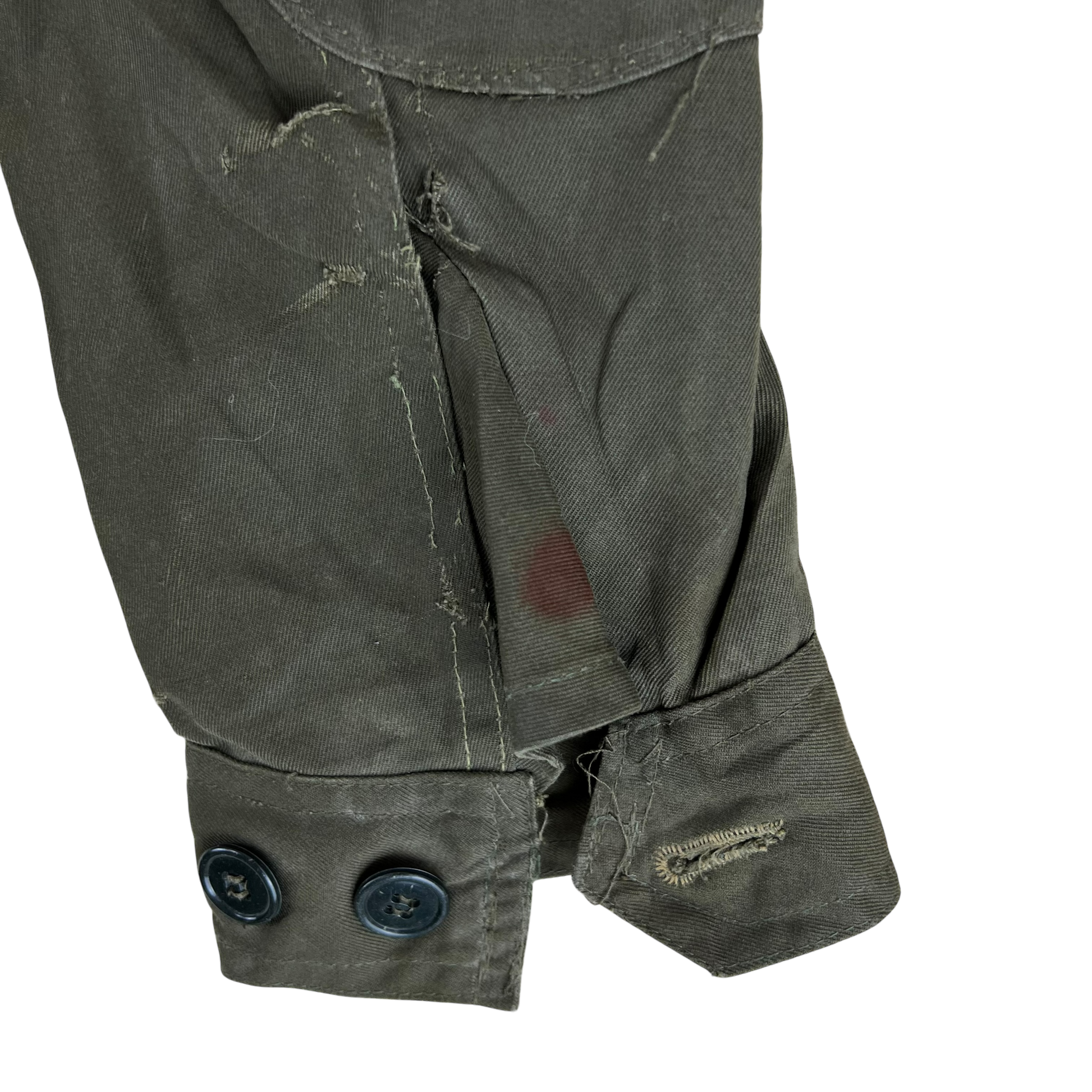 - Grade 2 - A great restoration or reworking piece, in need of a bit of care. The jacket is missing a button off the shoulder epaulette and there are a few small holes and marks. Rust on the armpit holes too due to long term storage.