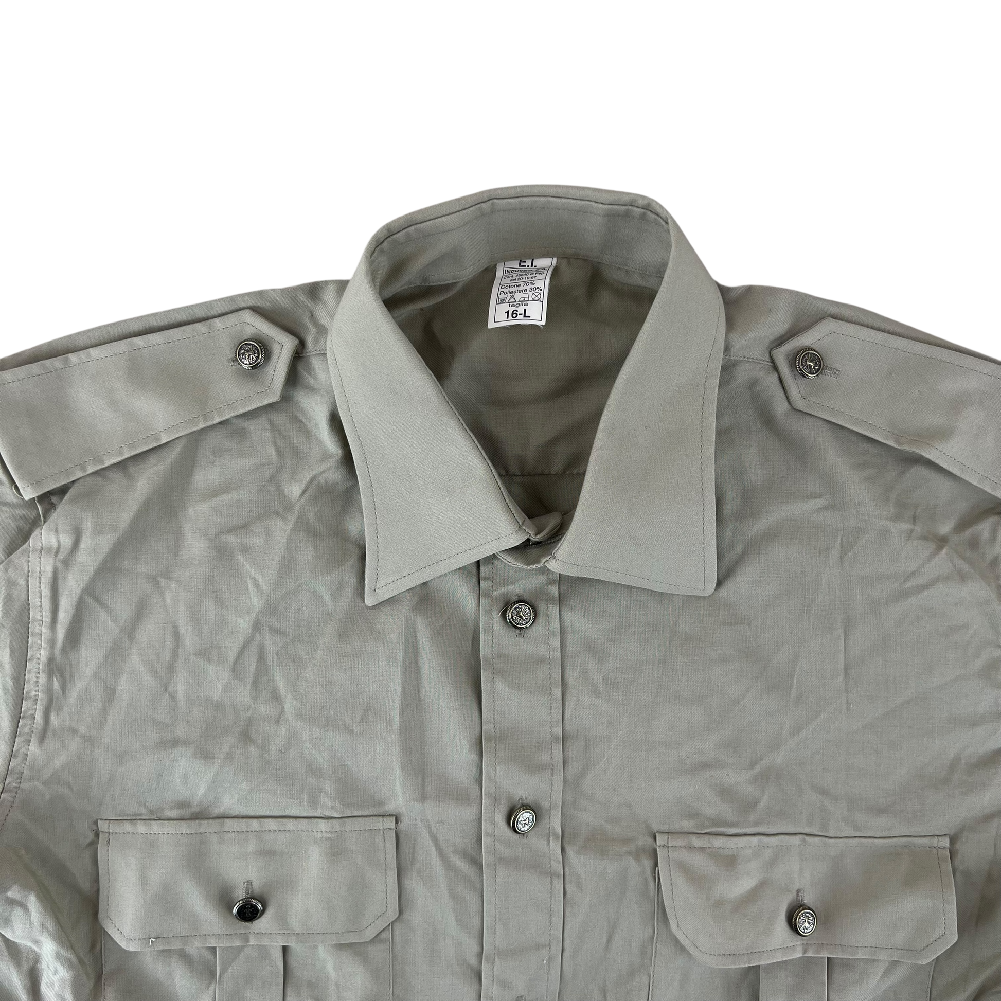 Beautiful quality army surplus from the Mediterranean. This Italian shirt would've seen issue towards the end of the cold war, usually by army personnel in summer weather, often those who have passed basic training. This service shirt is apart of a stunning uniforms worn by the Italian Army.