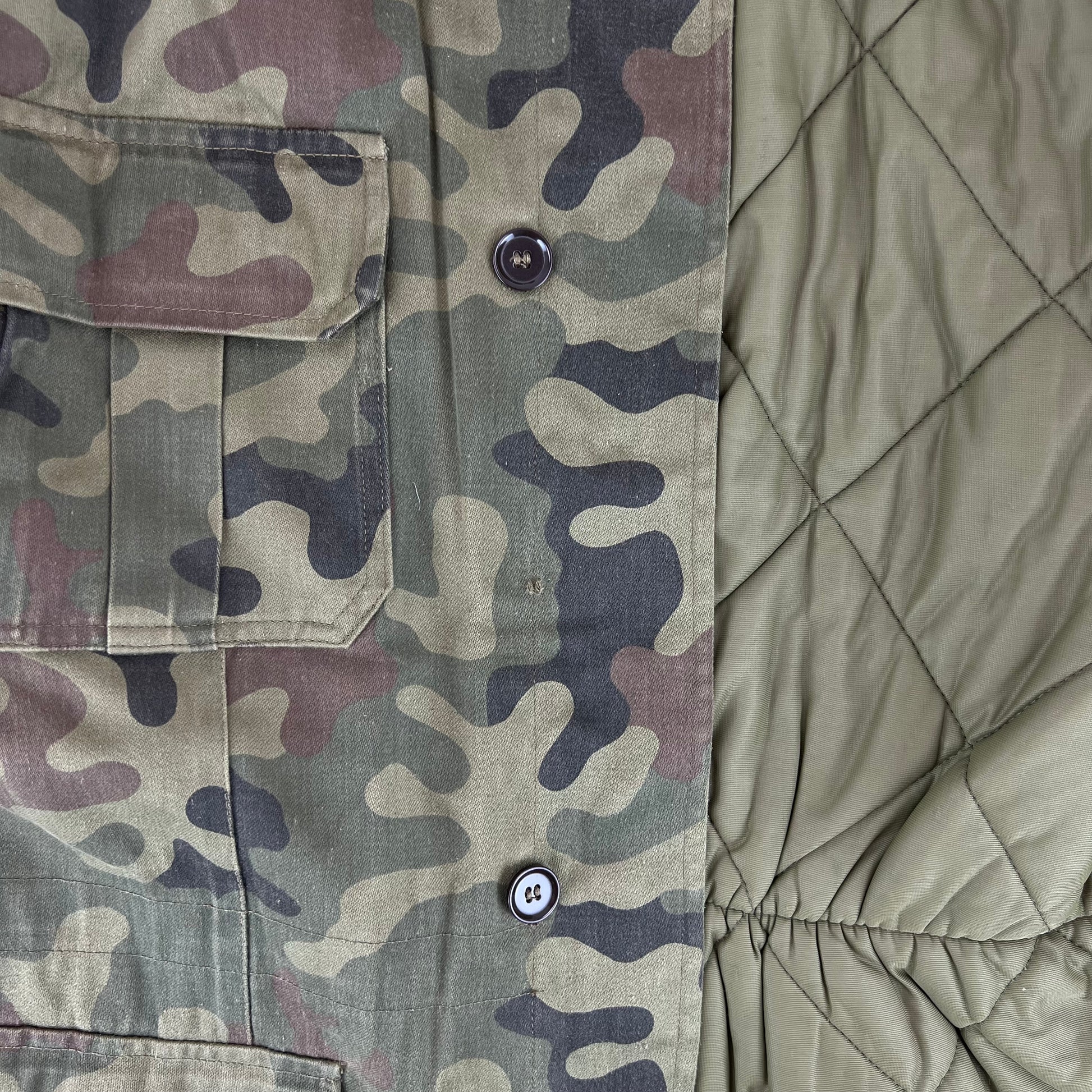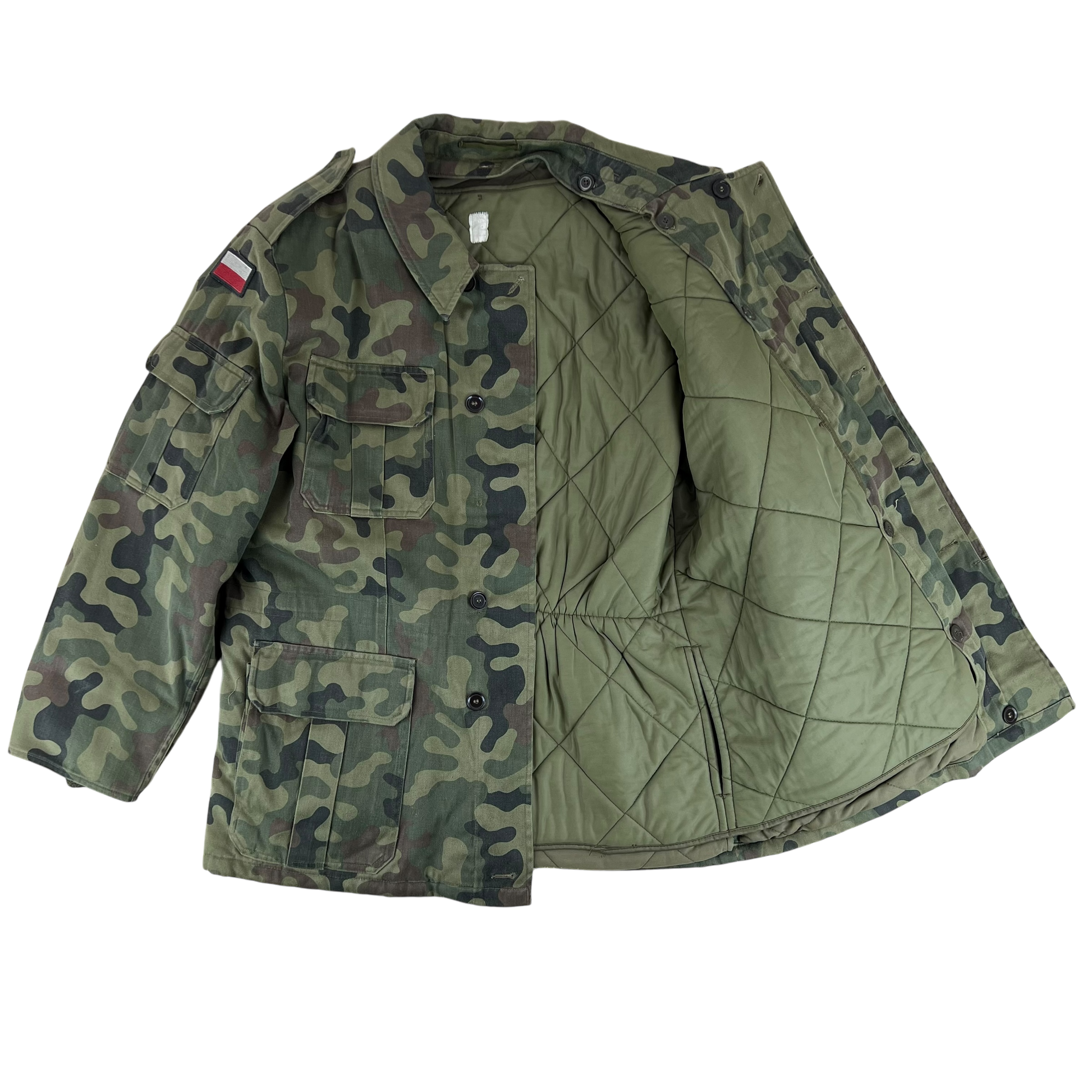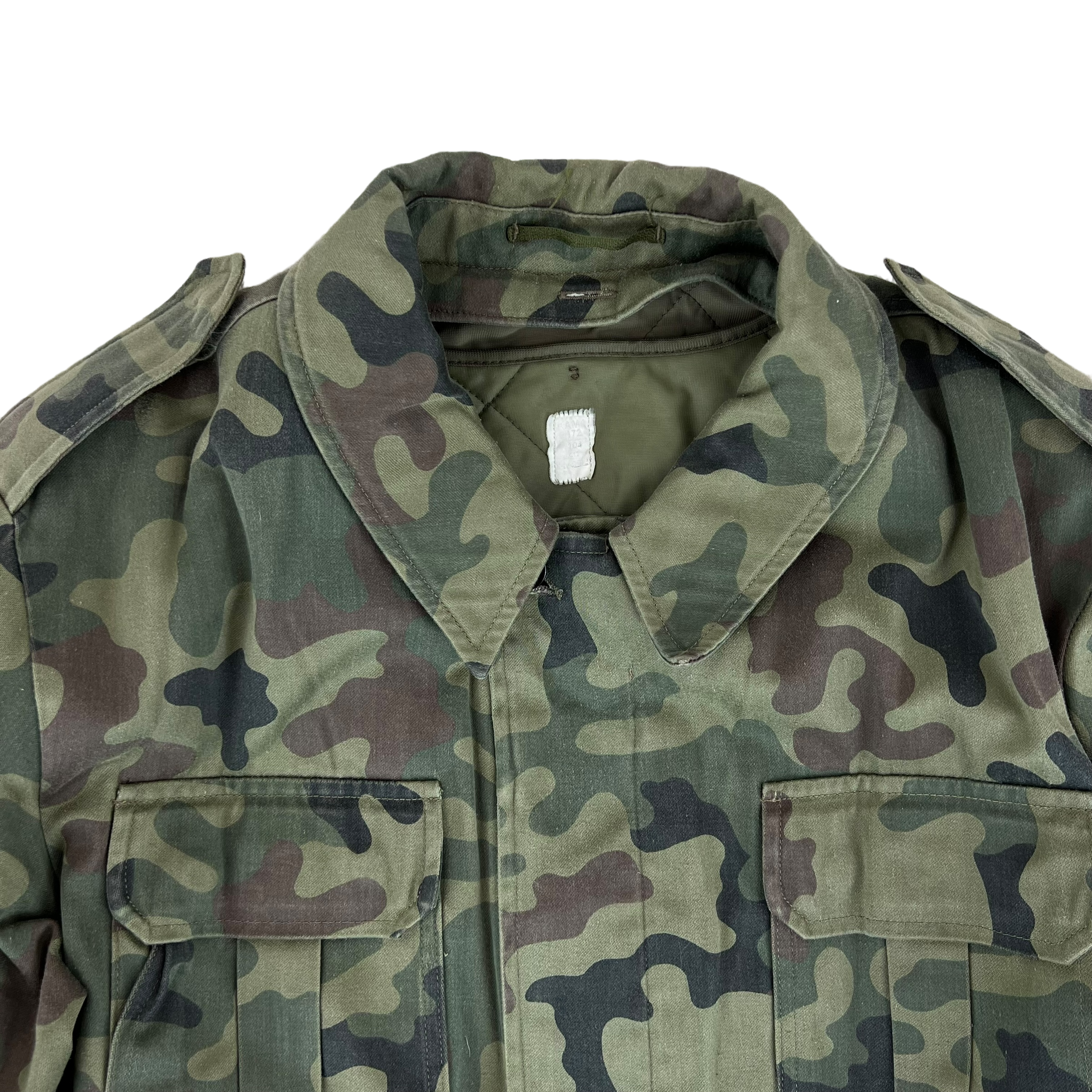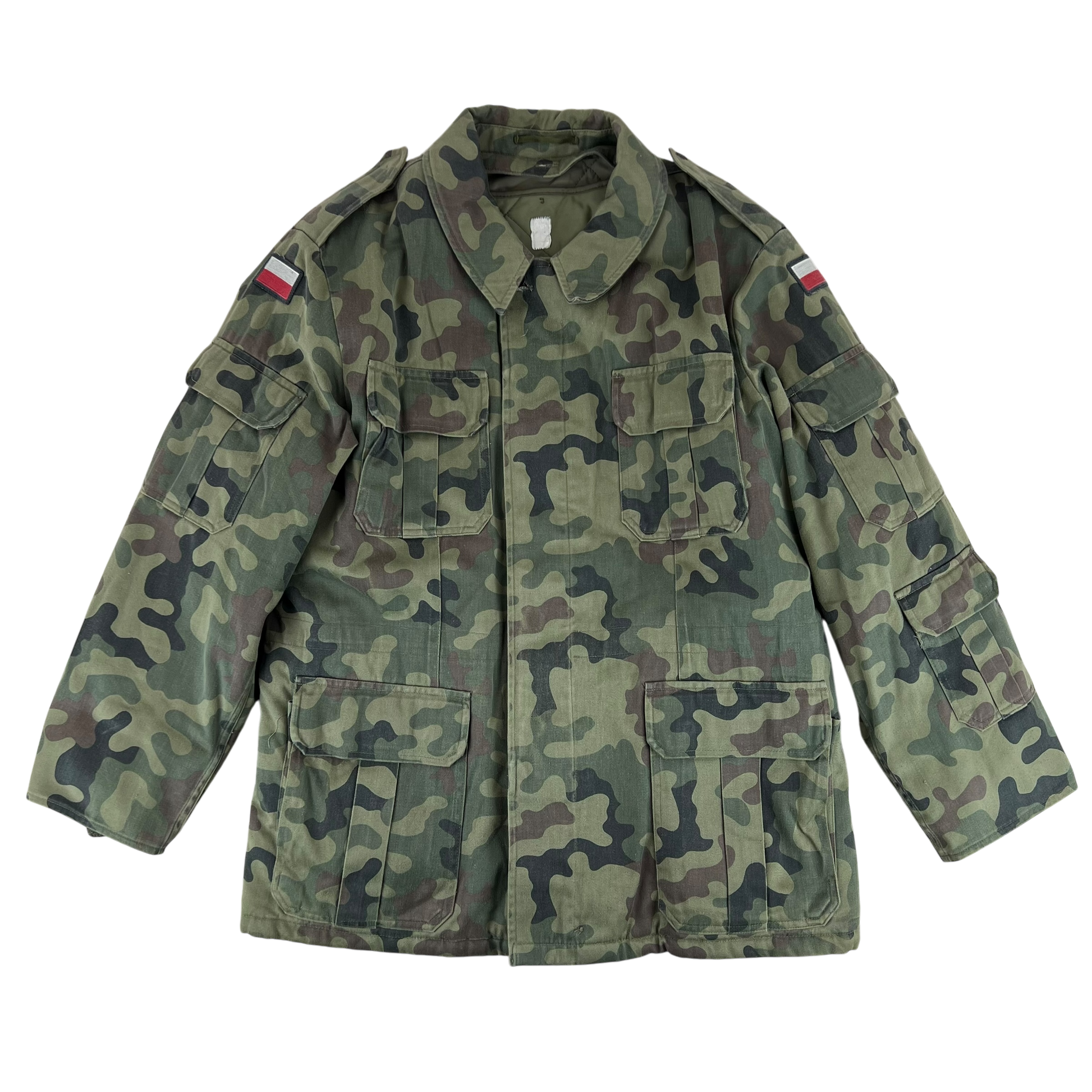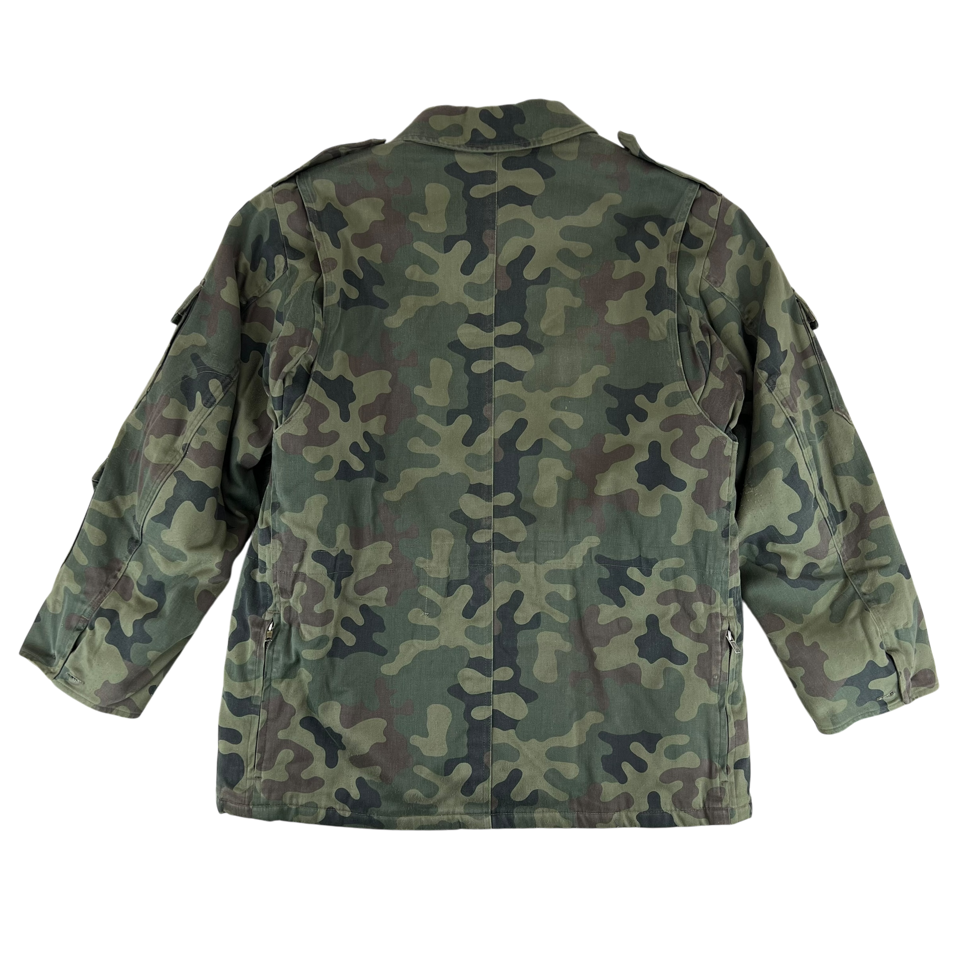 The coat comes in the Polish Wz93 Pantera camouflage pattern, or more informally the "leaf camo", "petal camo" or more pompously the "presidential woodland camo". It's got quite a few names, but the shading and colours make it nice and distinctive from other types of camo. This colourway has also been in use since the 90's, so for over 30 years it has served the Polish quite well!