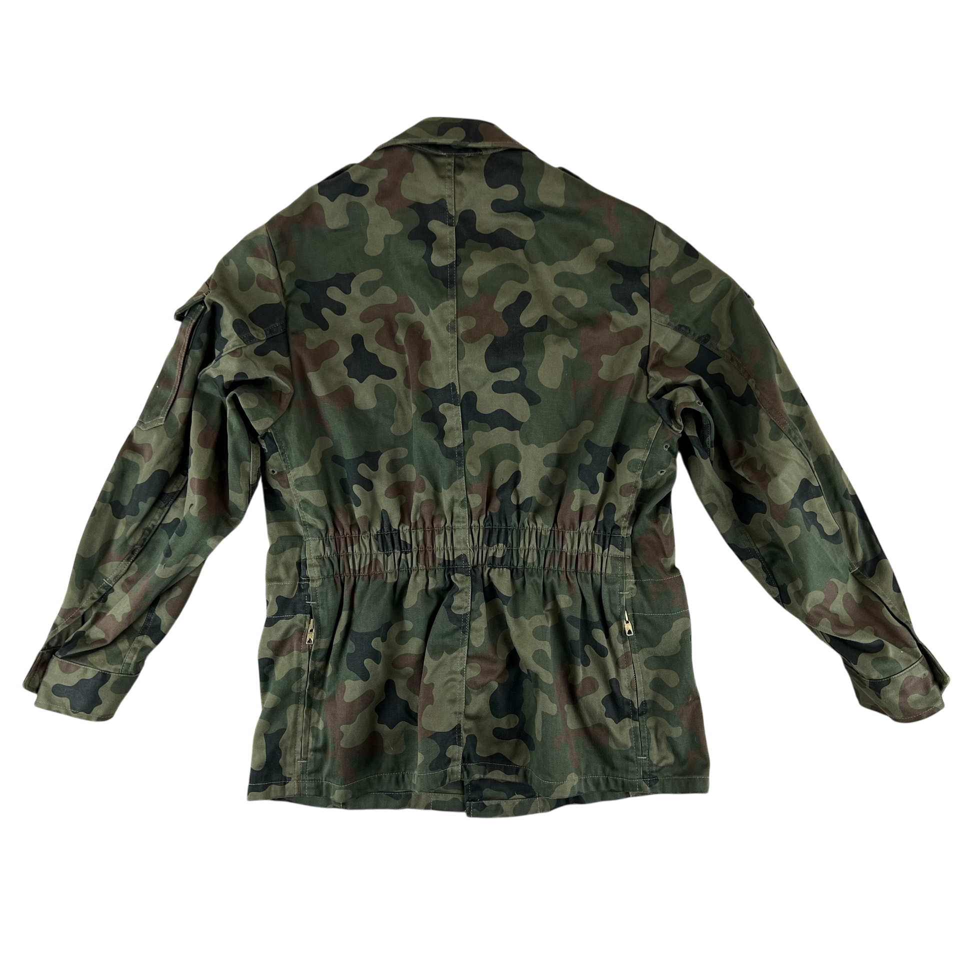 The coat comes in the Polish Wz93 Pantera camouflage pattern, or more informally the "leaf camo", "petal camo" or more pompously the "presidential woodland camo". It's got quite a few names, but the shading and colours make it nice and distinctive from other types of camo. This colourway has also been in use since the 90's, so for over 30 years it has served the Polish quite well!