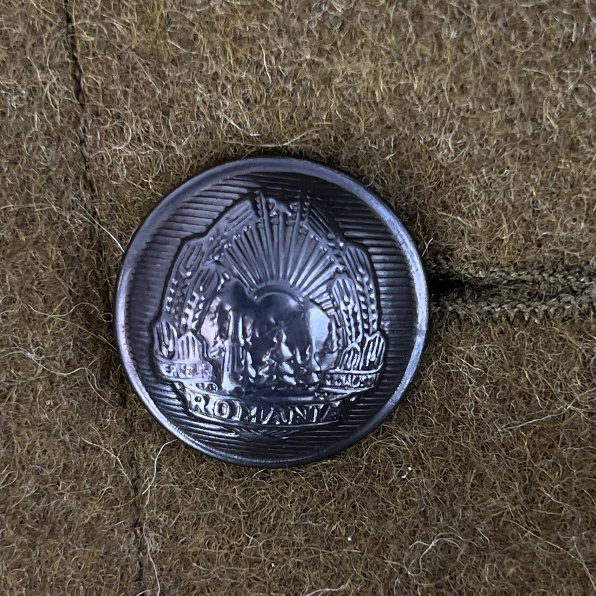 My favourite part of the jackets are the buttons. Like most Eastern Bloc countries, Romania has beautiful embossed buttons, showing off their coat of arms. Although they're tiny, the buttons feature rolling mountains with a lakeside forest below all wrapped up inside a wheat laurel with a practically mandatory soviet star above! So much character packed into a tiny little button.