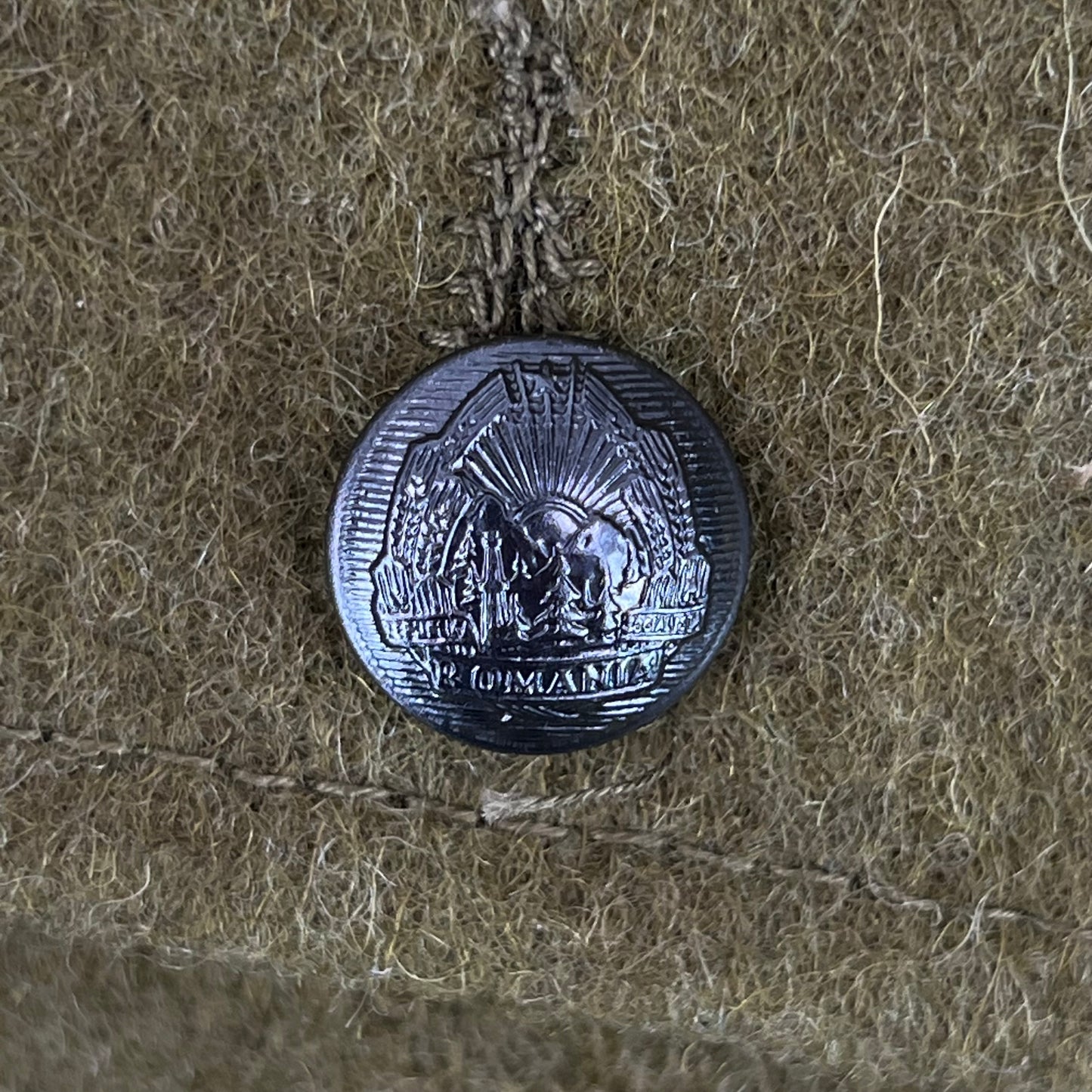 My favourite part of the jackets are the buttons. Like most Eastern Bloc countries, Romania has beautifull embossed buttons, showing off their coat of arms. Although they're tiny, the buttons feature rolling mountains with a lakeside forest below all wrapped up inside a wheat laurel with a practically mandatory soviet star above! So much character packed into a tiny little button.