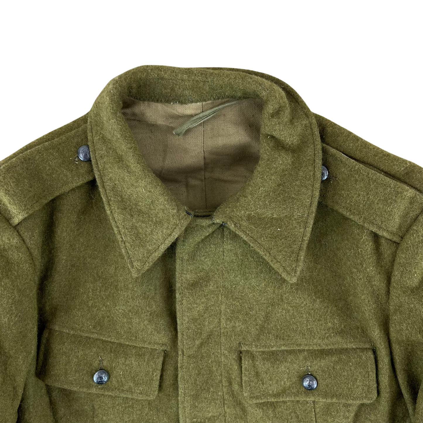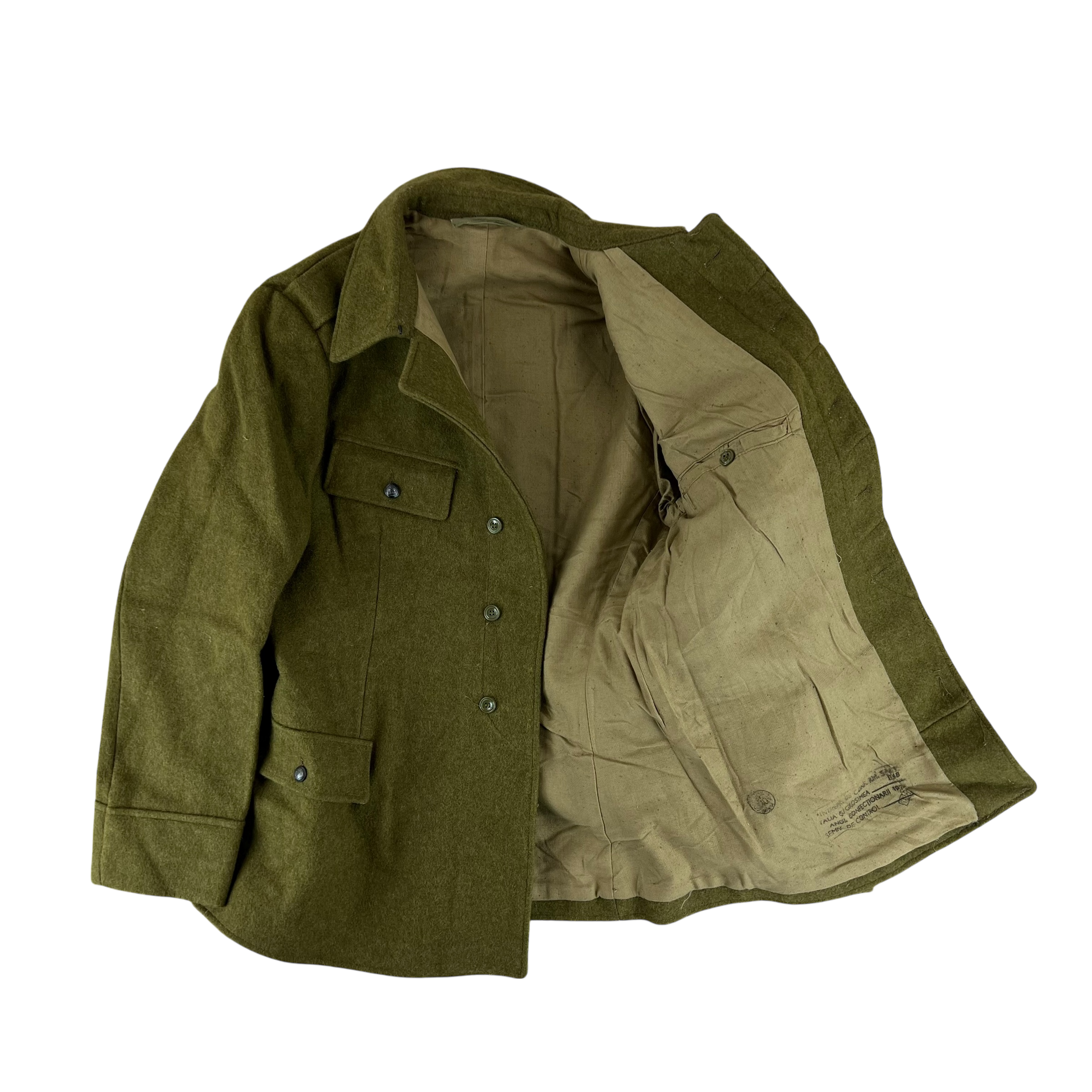 Vintage Romanian People's Republic surplus, used by the communist army as general issue from the mid 1960's onward. It was intended for an array of branches as it was a general issue item. It's quite minimal, with only the 2 chest pockets actually being pockets. There's an interior button pocket for ID, wallets, etc. The shoulder epaulettes are also functional, helping to secure bag straps and the like.
