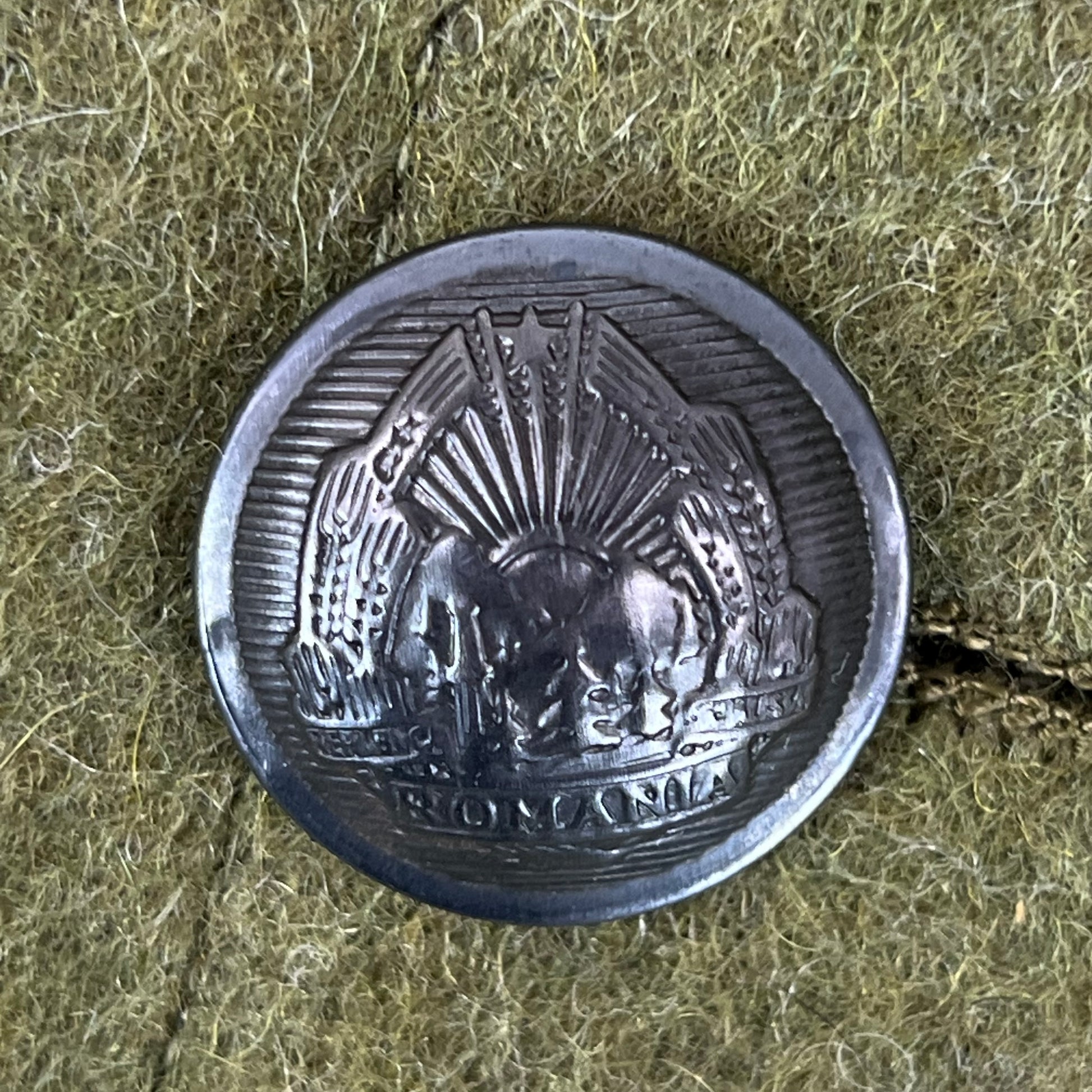 My favourite part of the jackets are the buttons. Like most Eastern Bloc countries, Romania has beautifull embossed buttons, showing off their coat of arms. Although they're tiny, the buttons feature rolling mountains with a lakeside forest below all wrapped up inside a wheat laurel with a practically mandatory soviet star above! So much character packed into a tiny little button.