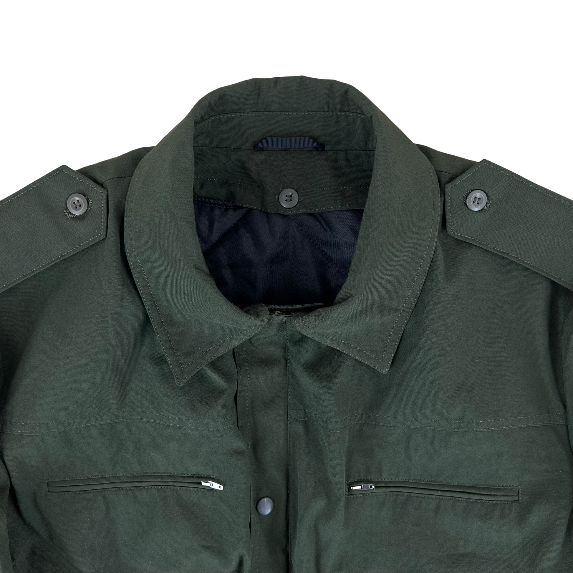 For features you have 4 zipper pockets, 2 on the chest and 2 on the hips which double up as handwarmer pockets. There is a wonderful thermal quilted liner which can be detached at any point to suit all seasons. For a more tailored look you'll find both the cuffs and waist have a belt. The whole coat comes in a solid Slovak olive drab colour, great for outdoors themed wardrobes.