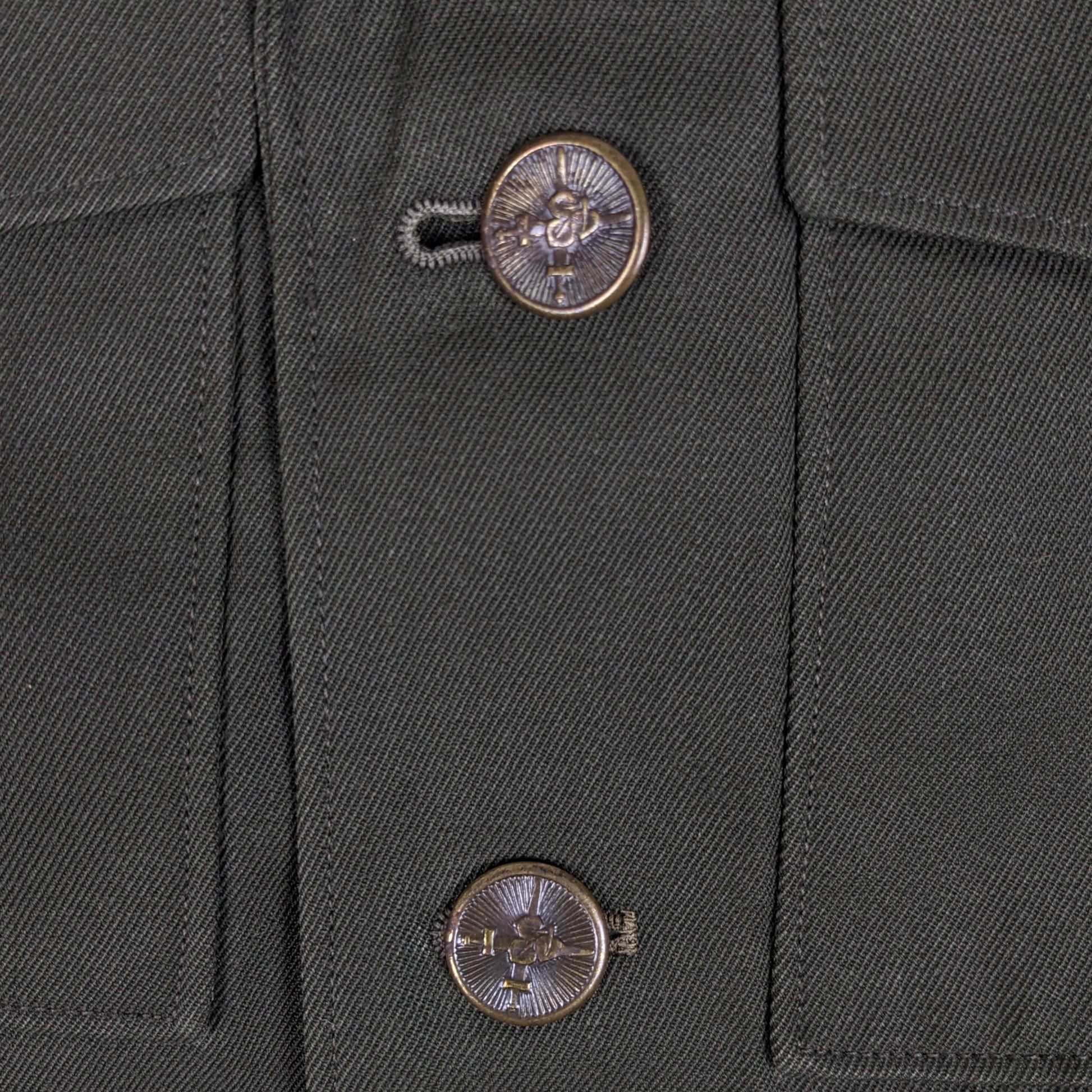 Feature wise, the jacket takes inspiration from the timeless design of European field jackets, utilising a safari style set of pockets, 2 on the chest with 2 on each hip as well as a small internal slit pocket for keeping your smaller items secure. The buttons are detailed beautifully, featuring two crossed swords with branches above. There's also shoulder epaulettes for any rank slides or details you may want to add. Great for modern history as well as costumes and theatre use.
