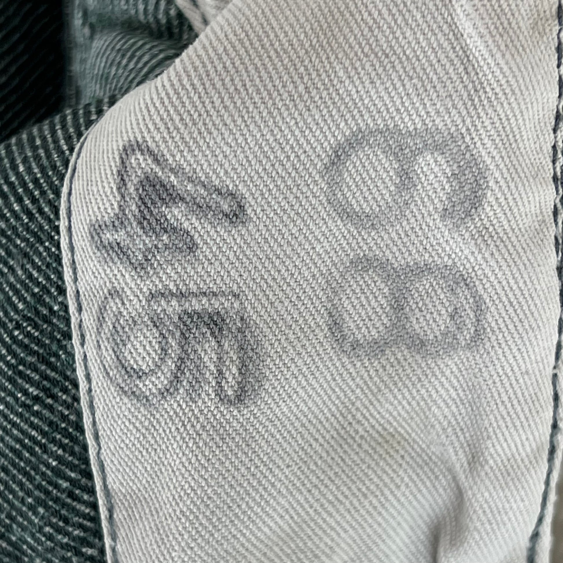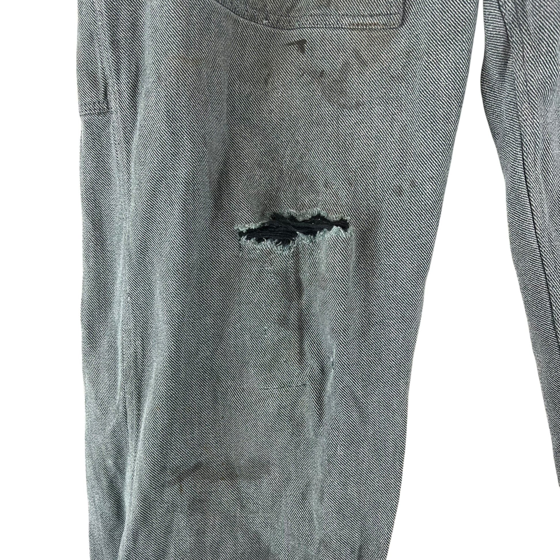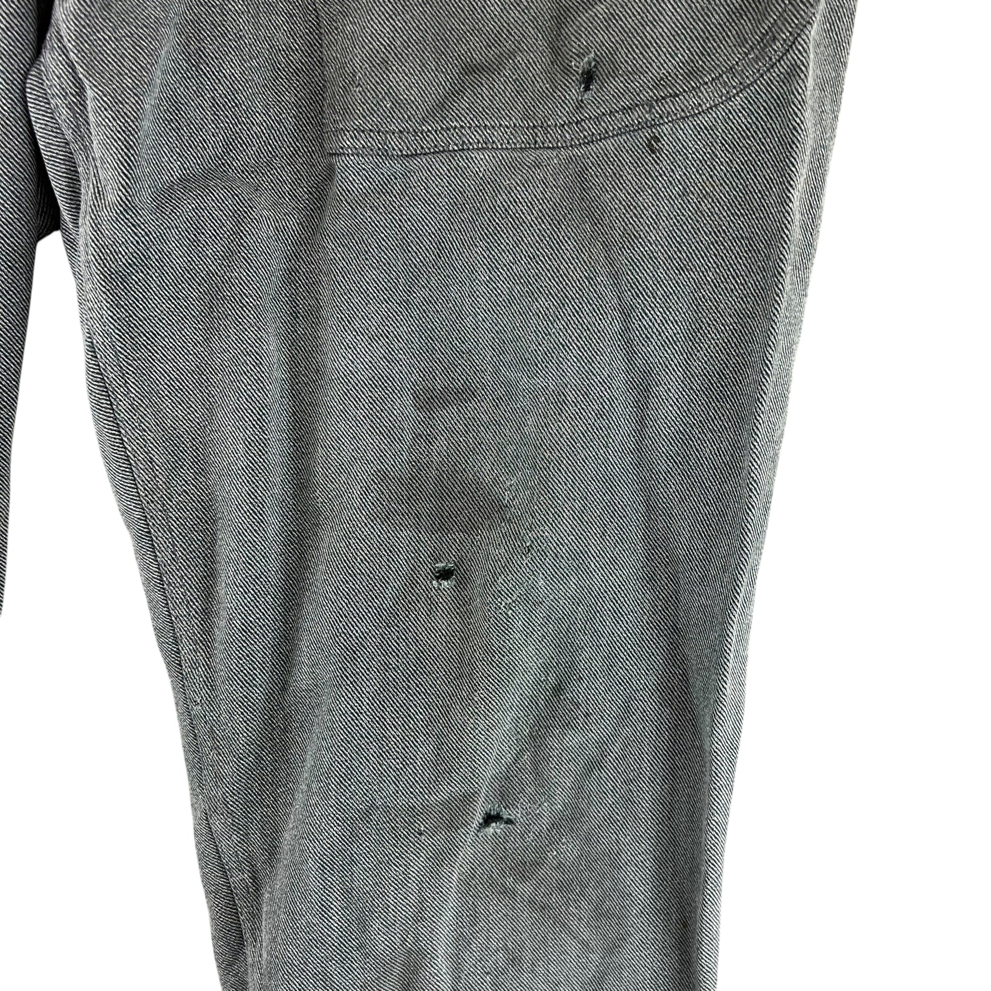 - Grade 2 / Original Condition - General signs of prior wear, from some marks, to holes and scuffs on the hems. Larger hole on the knee. Distressed piece. Up for much more wear especially if you prefer a bit of character at a reduced price. See photos.