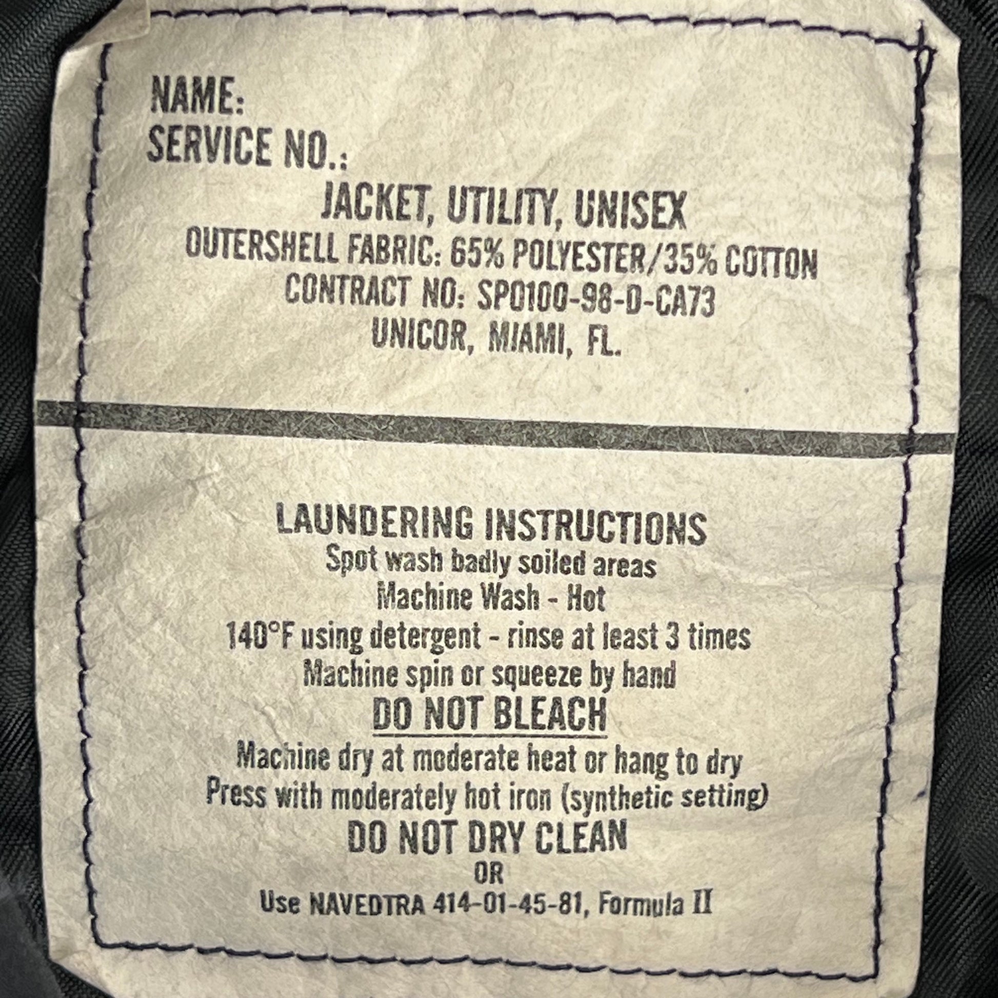 - "JACKET, UTILITY, UNISEX"