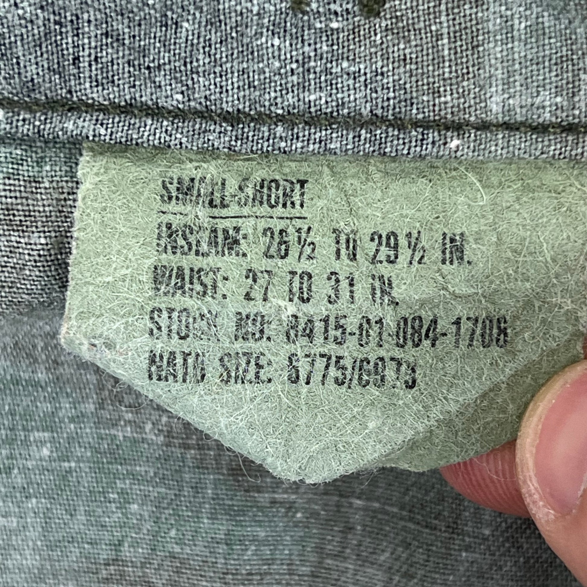 - Waist Size: 32" | Suggested Size: Small Slim - Label reads "SMALL - SHORT"