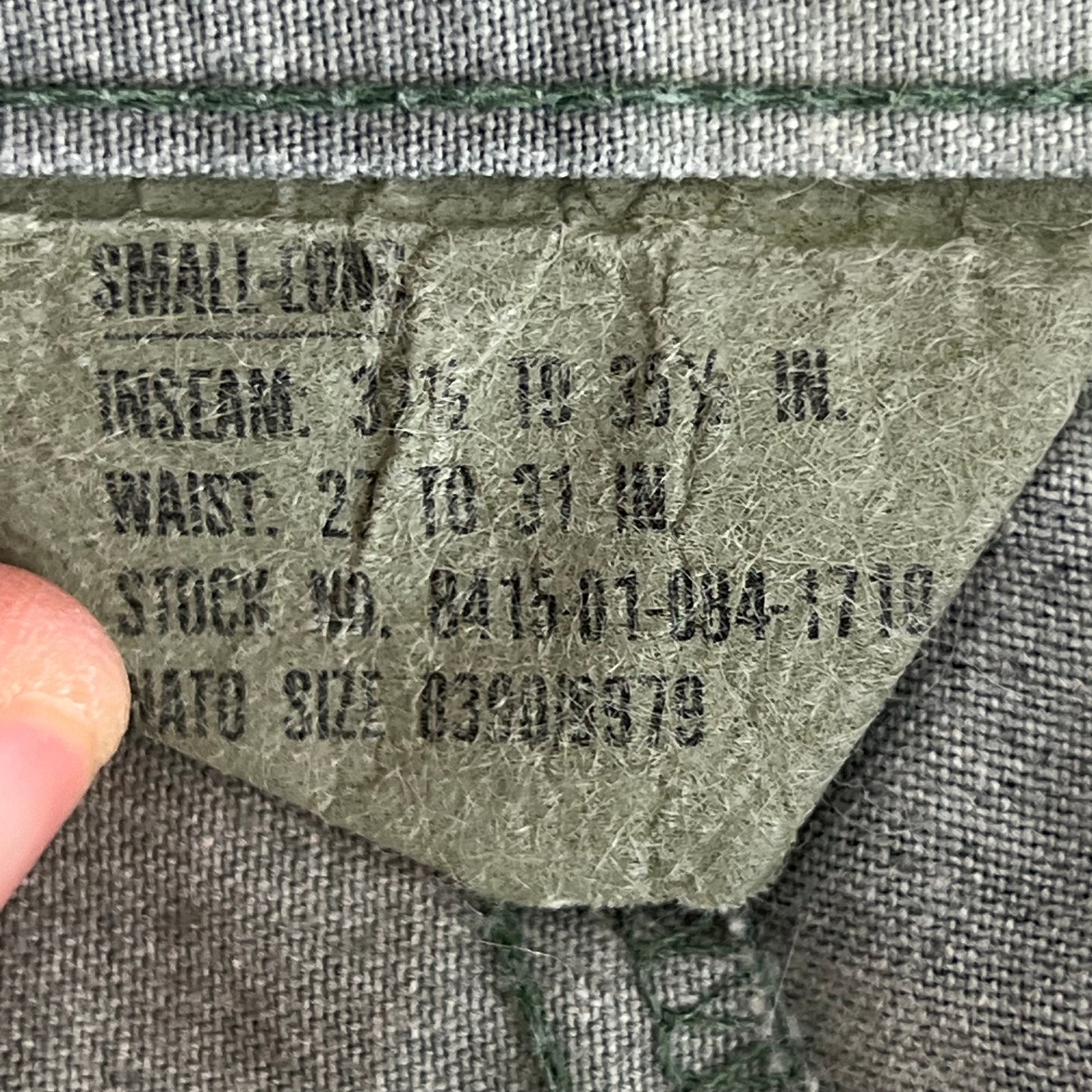 - Waist Size: 31" | Suggested Size: Small Slim - Label states "SMALL"